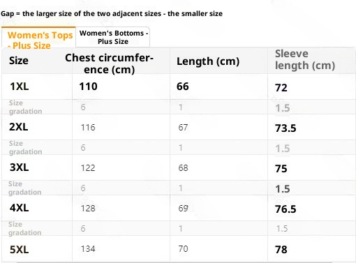 Size: 1XL, 2XL, 3XL, 4XL, 5XL