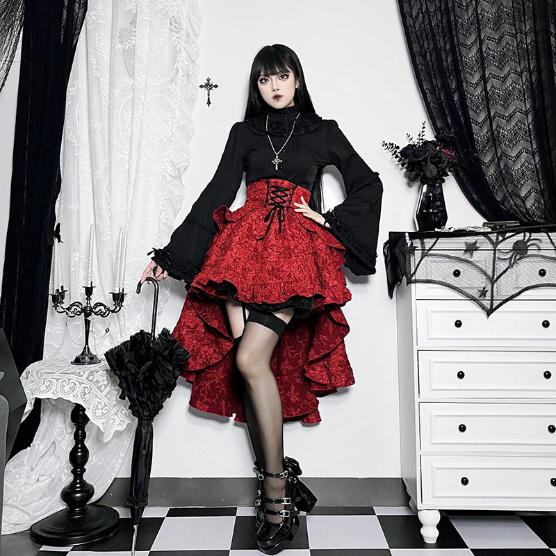 Patchwork Hip Skirt Elegant Slim High Waist Lace-up Waist-controlled Trailing Skirt Women