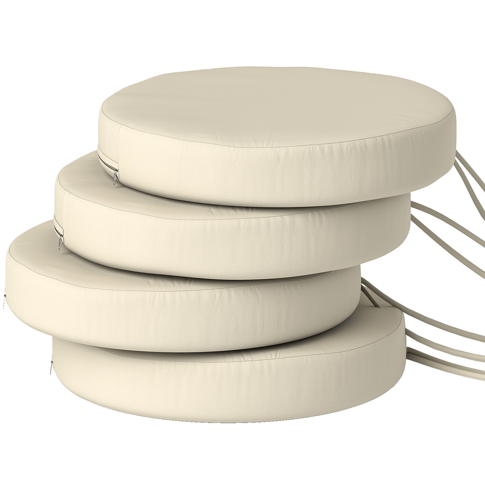 Patio Chair Cushions Set Of 4 Round Seat Cushions For Dining Bistro Chairs Machine Washable, 15 X 15 X 3, Cream White