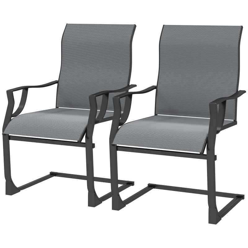 Patio Dining Chairs Set Of 2 With High Backrest, Armrest, Breathable Fabric & Metal Frame, 256LBS, Light Gray