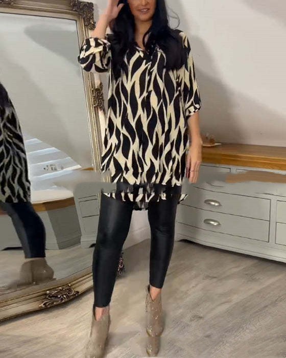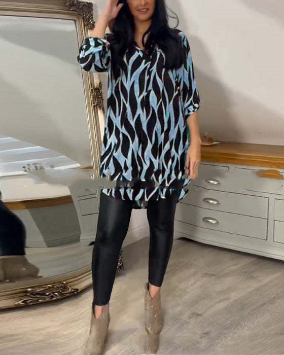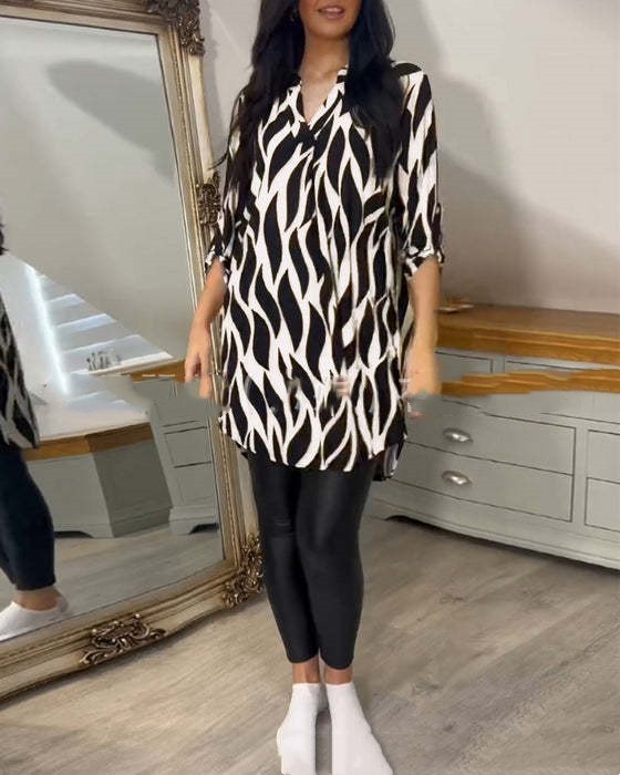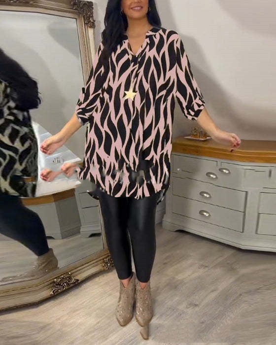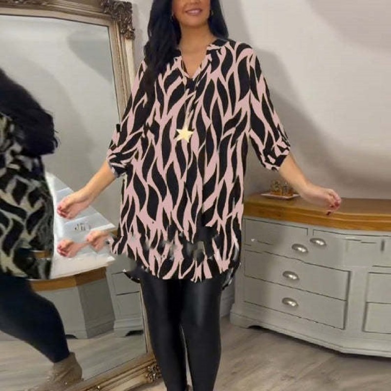 Pattern V-neck Plus Size Half Sleeve Top Shirt