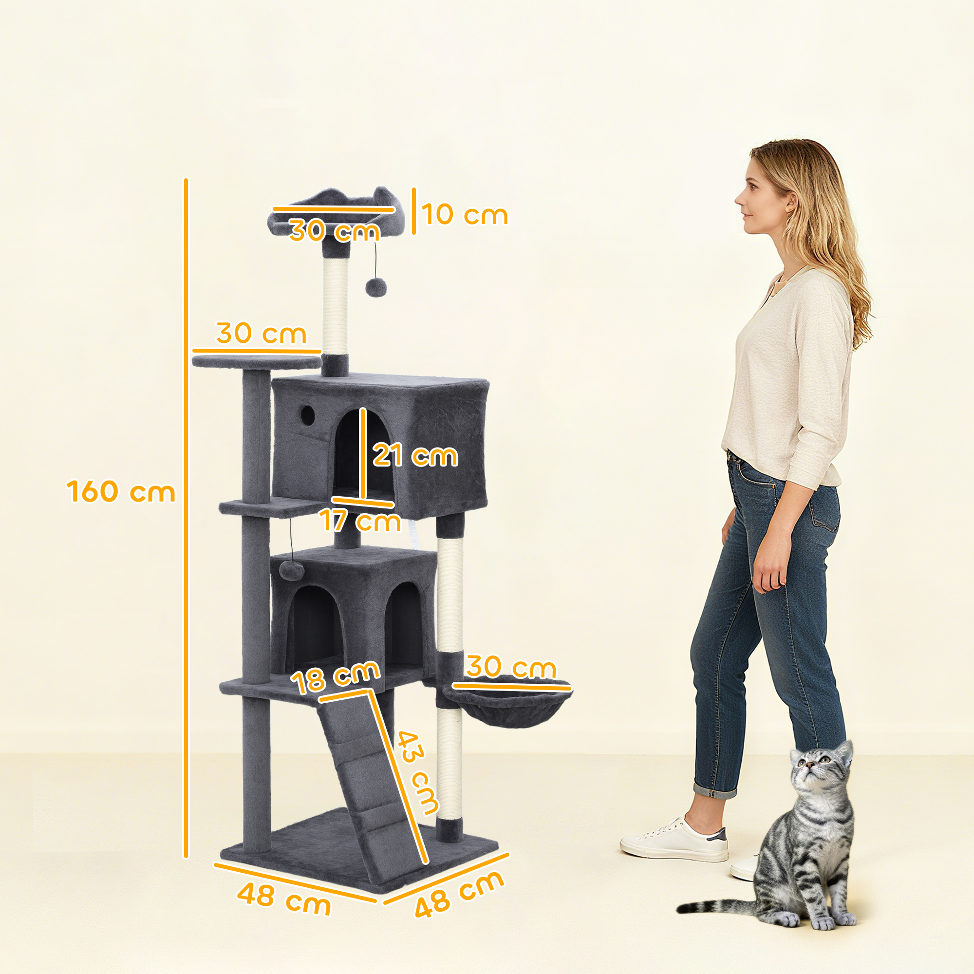 Introduce your cats to endless entertainment and comfort with this PawHut cat tree. It features multiple levels for climbing and jumping, complete with a hanging toy at the top to captivate playful pets. The sisal scratch posts are for clawing, while the cosy perches and private pet house provide comfy spots for relaxation. This cat tree offers a safe haven for climbing, napping and playing, allowing cats to enjoy their activities in safety.