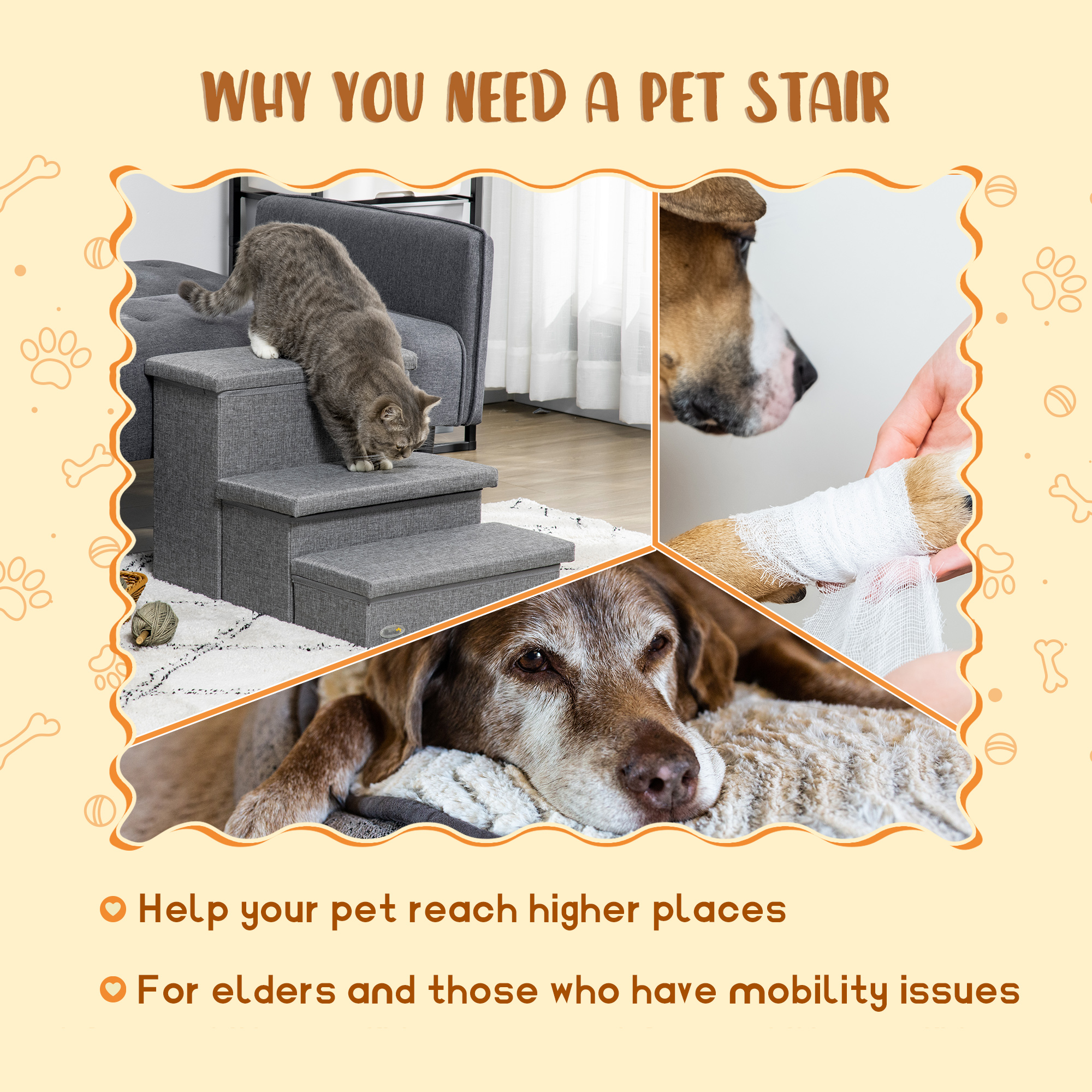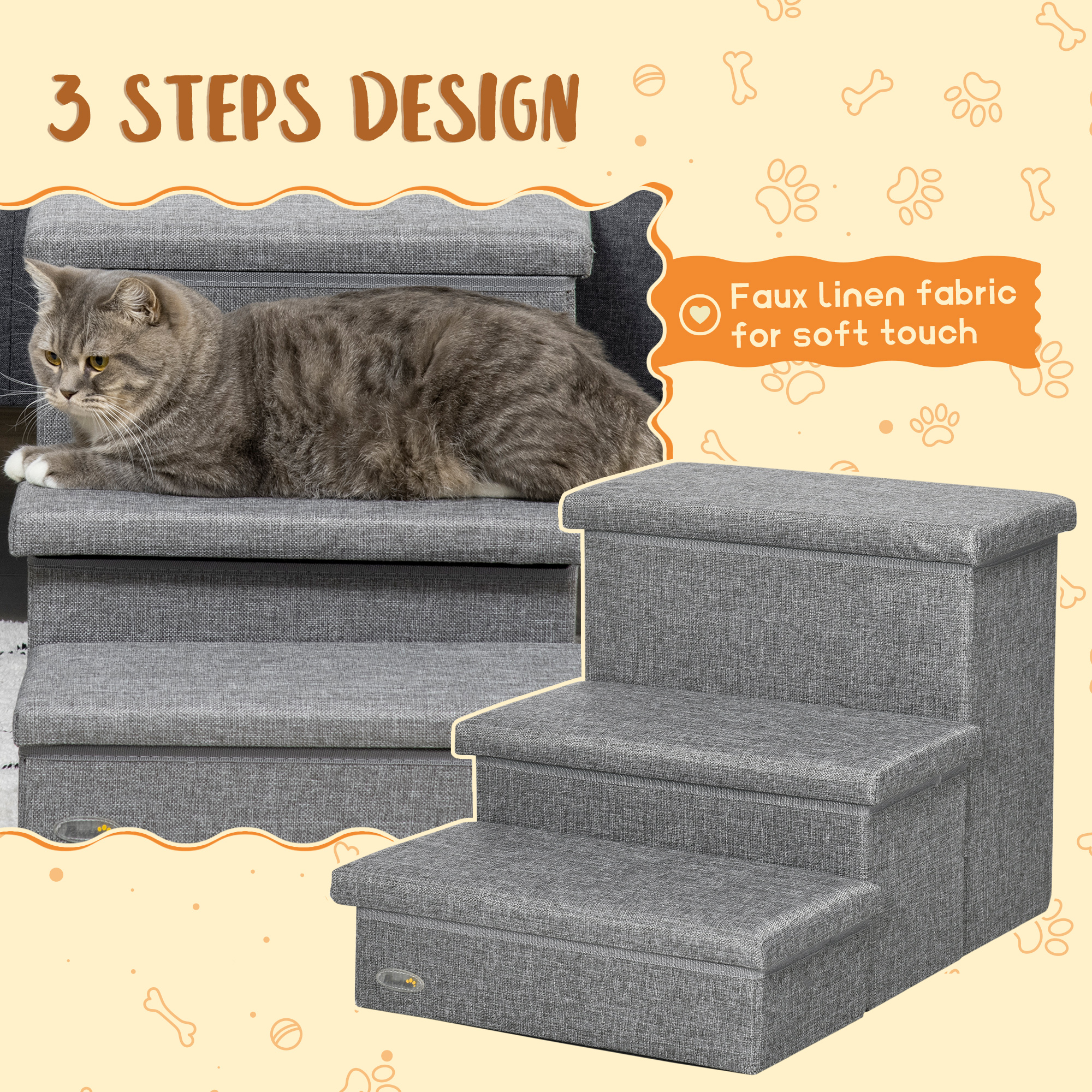 If pets are constantly climbing up and down, they could get joint pain and mobility problems, especially elderly ones. With these PawHut pet stairs, cats can reach their favourite spots without struggling, such as beds, sofas and shelves. Made from durable MDF, the steps are wide to keep pets supported as they walk up and down. Finished with removable tops on each step for extra space, where you can store toys, blankets and more, keeping your space tidy and free of clutter.