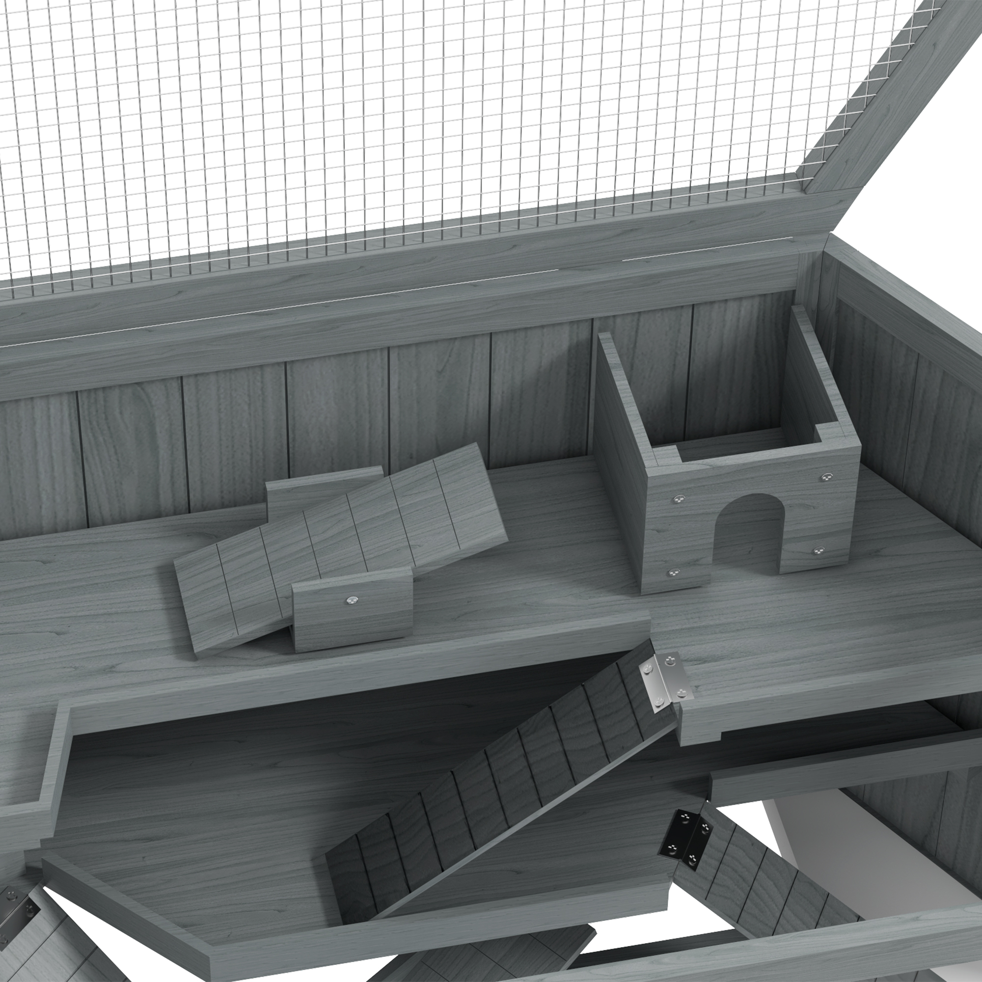 PawHut 3 Tier Wooden Large Hamster Cage With Sliding Tray, Seesaws, Water Bottle, Grey