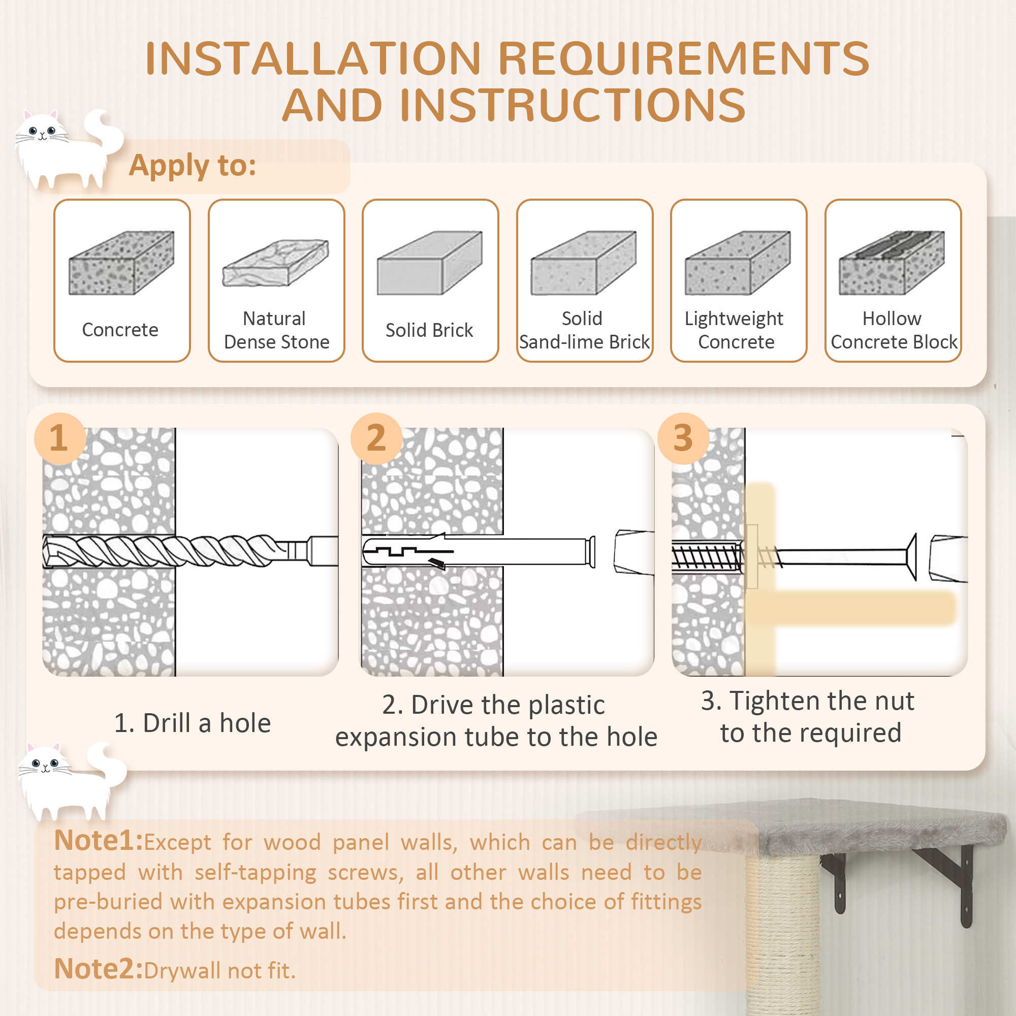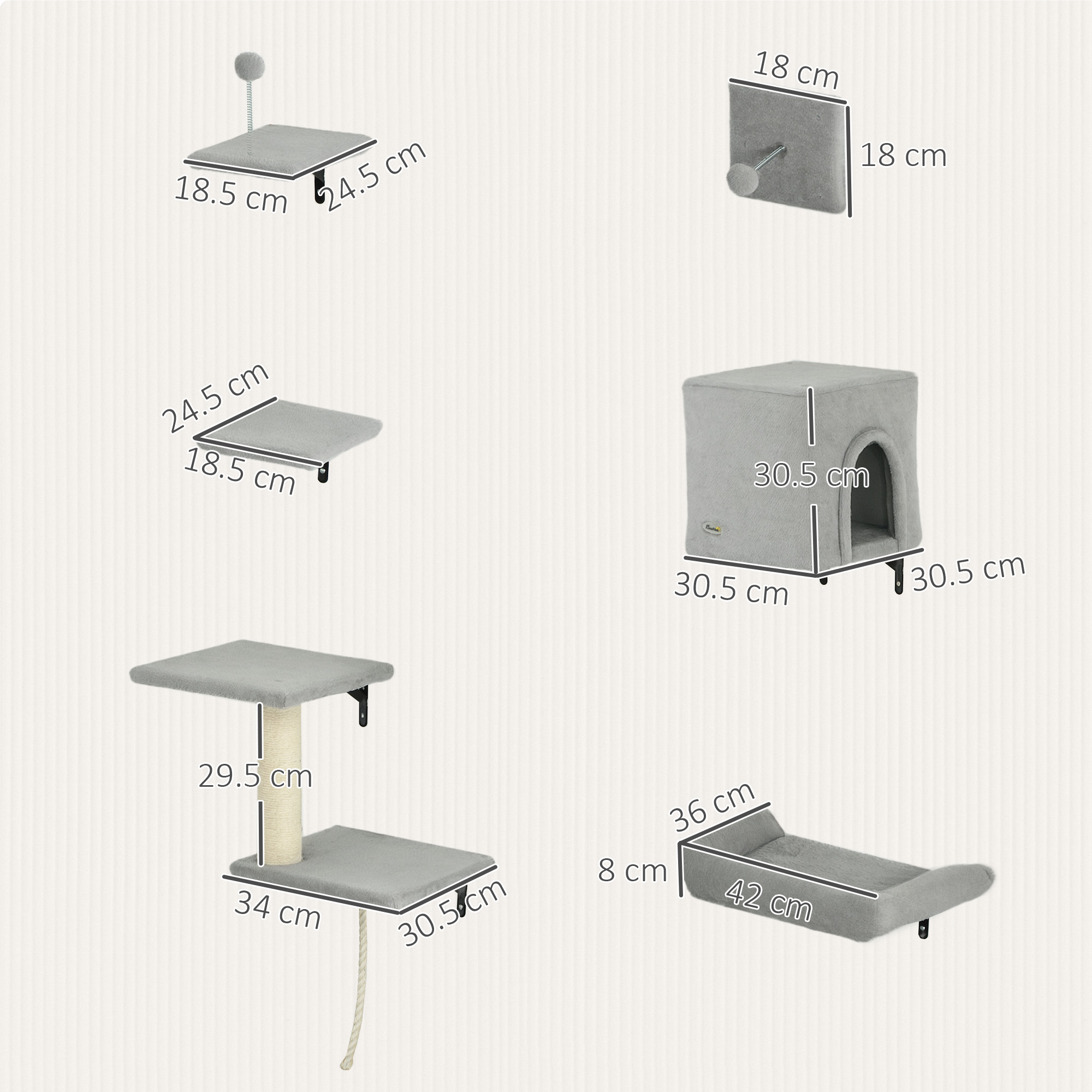 Transform your home into a feline paradise with the PawHut cat wall furniture! This chic 6-piece set includes a condo, plush cat bed and multiple platforms, all designed to indulge your cat's instincts to climb and rest. The sisal scratching post and toy ball keep them entertained, while the sleek wall-mounted design enhances your decor without taking up floor space.