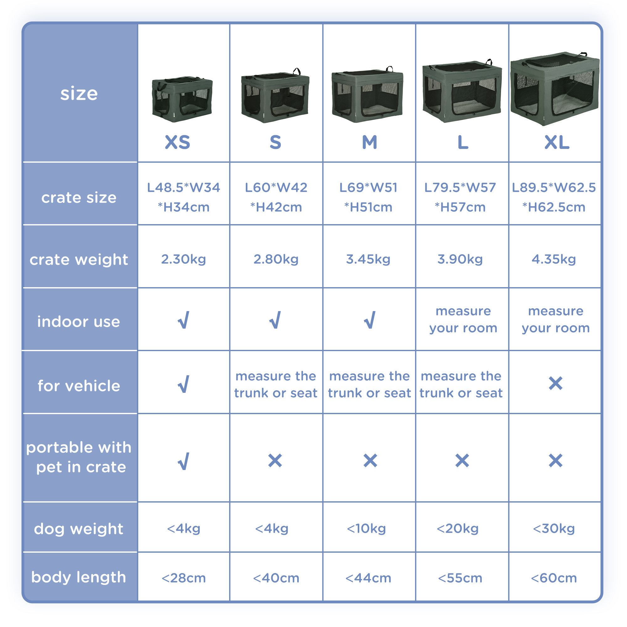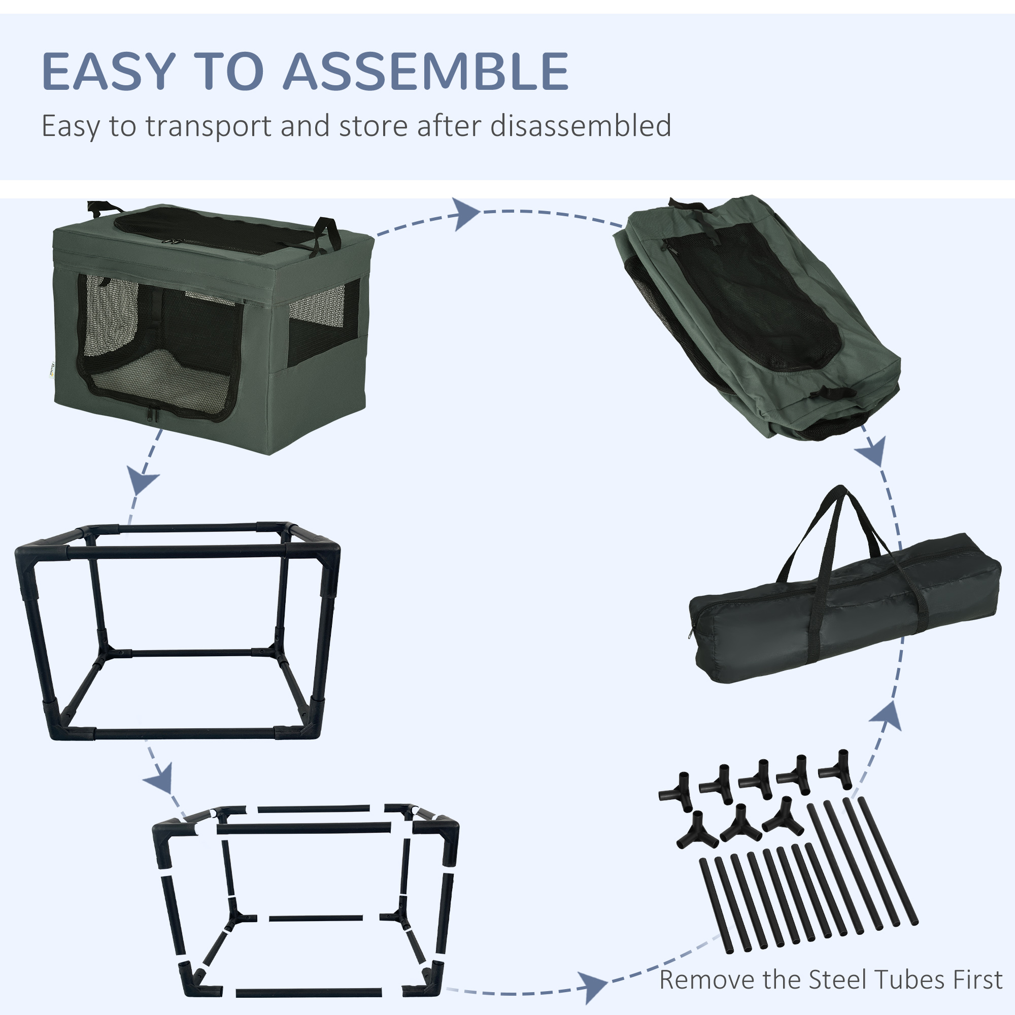 Struggle to travel with pets? With this PawHut fabric dog crate, you'll struggle no more. It has two handles on top, so it's much easier to carry it. Three doors for easy access – they'll enter a spacious area, relaxing on a soft cushion whilst the air flows through the mesh window to keep them cool. It's simple to store with the removable tube frame and comes with a bag, saving space. It can also be used at home, so pets have a cosy lounge.