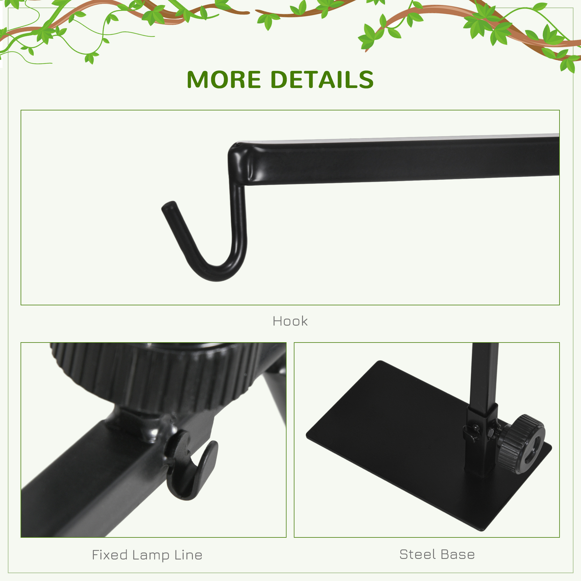 Get your cold-blooded pets the lighting and heating they need – choose this versatile PawHut reptile lamp stand. Elevating their habitat, you can adjust the stand's width and height so it perfectly fits different tanks. A stable steel base for a solid foundation, it stays upright when in use – no worries of it wobbling or toppling over, whilst the sleek hook keeps the lamp secure and the cords tidy. A great accessory for your lamp, ensuring snakes, lizards and other amphibians can thrive.