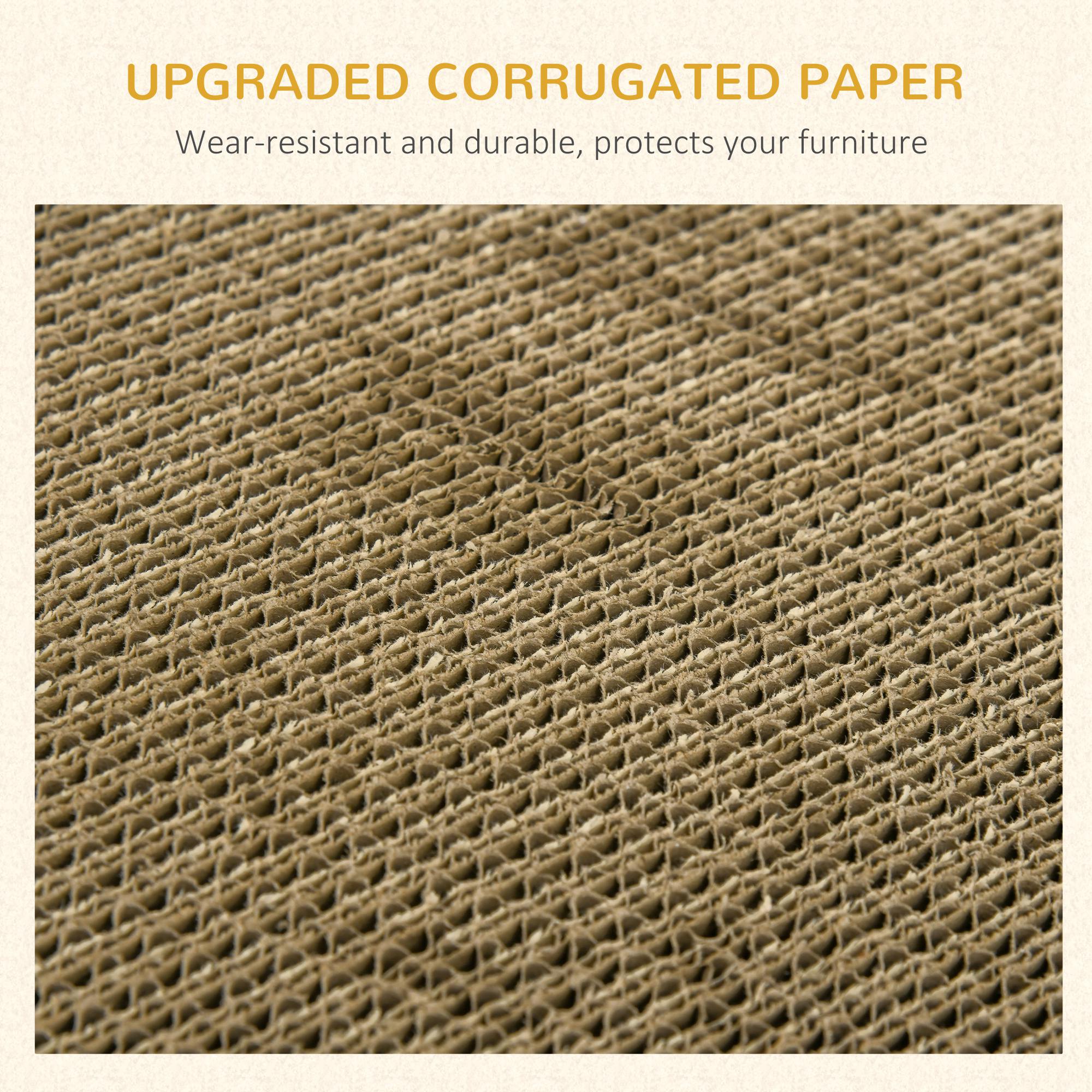 Indulge your feline friend with the PawHut cat cardboard scratcher, a sanctuary of comfort and style. Designed for cats to lounge and unwind, this scratcher offers a dedicated space for claw sharpening, protecting your cherished furniture. Infused with irresistible catnip, it ensures your cat feels relaxed and at ease quickly. Its elegant design seamlessly complements your home decor, adding a touch of sophistication while prioritizing your pet's comfort and your furniture's protection.