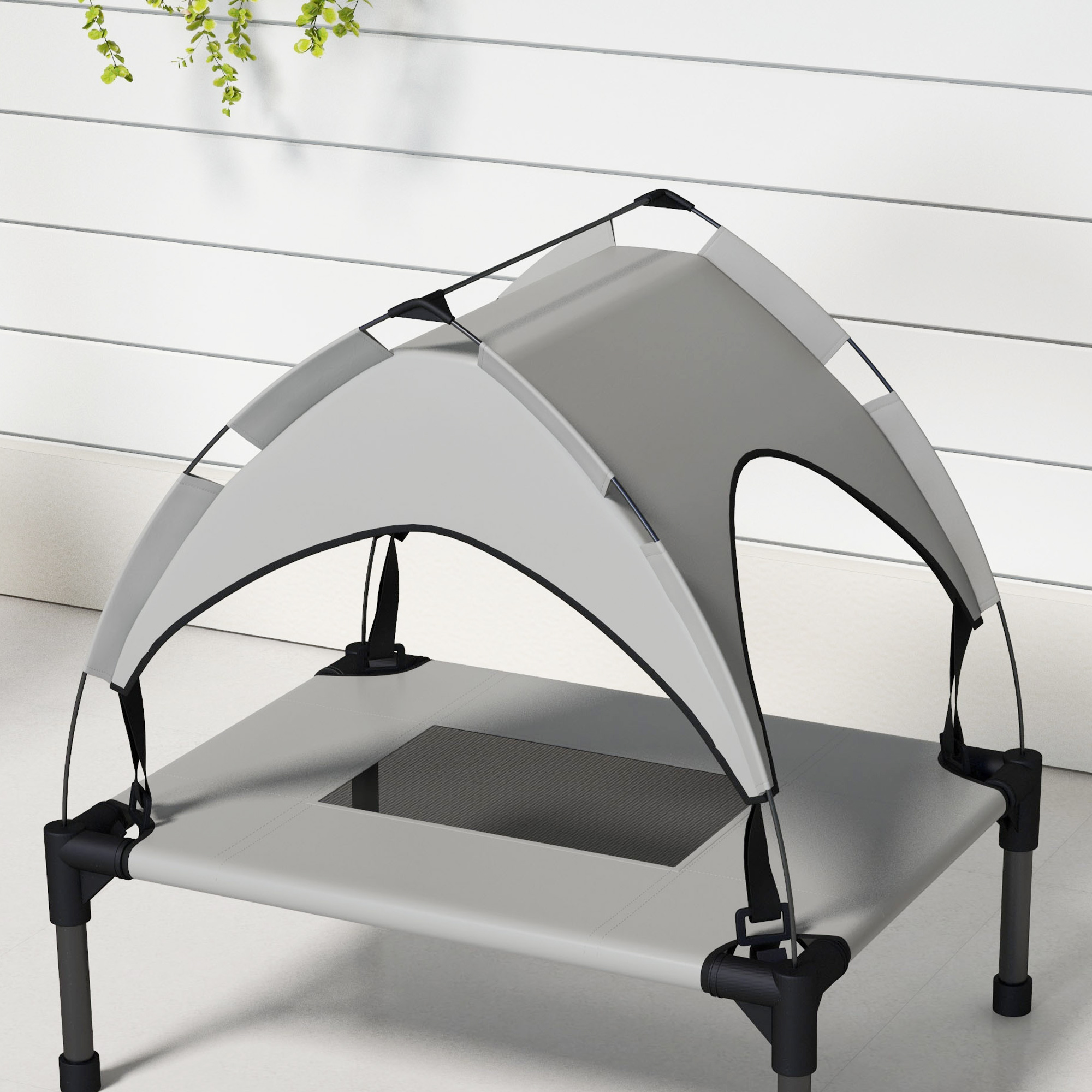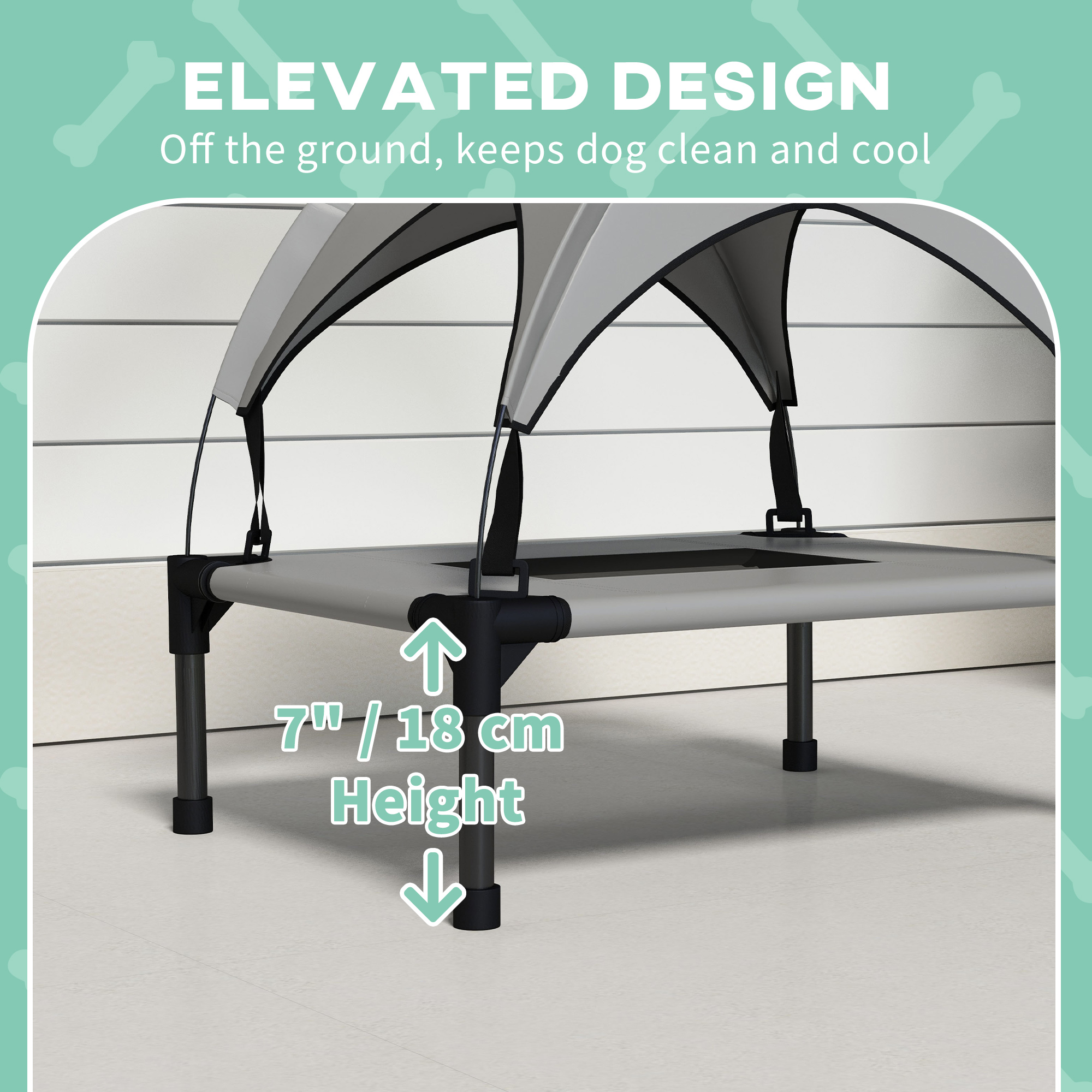 Spoil your pets with PawHut's elevated dog bed – the epitome of comfort and style. With a water and UV-resistant canopy, it shields your companion from sun and rain, whilst the mesh cover ensures optimal airflow, keeping them cool and cosy. Designed for relaxing outdoors, its raised base keeps them from the cold and dirty ground for maximum comfort. A luxurious retreat for pets to revel in, it's a must-have for all dog owners.