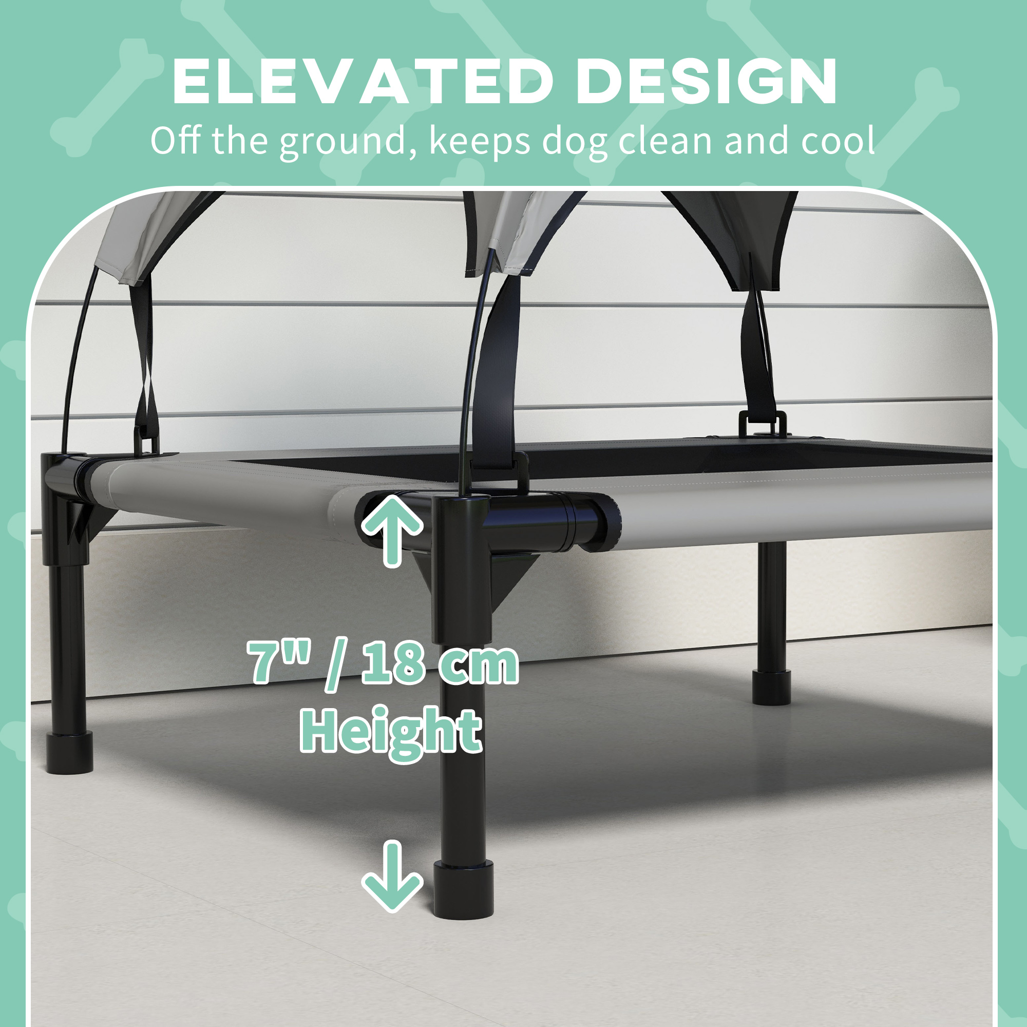 Spoil your pets with PawHut's elevated dog bed – the epitome of comfort and style. With a water and UV-resistant canopy, it shields your companion from sun and rain, whilst the mesh cover ensures optimal airflow, keeping them cool and cosy. Designed for relaxing outdoors, its raised base keeps them from the cold and dirty ground for maximum comfort. A luxurious retreat for pets to revel in, it's a must-have for all dog owners.
