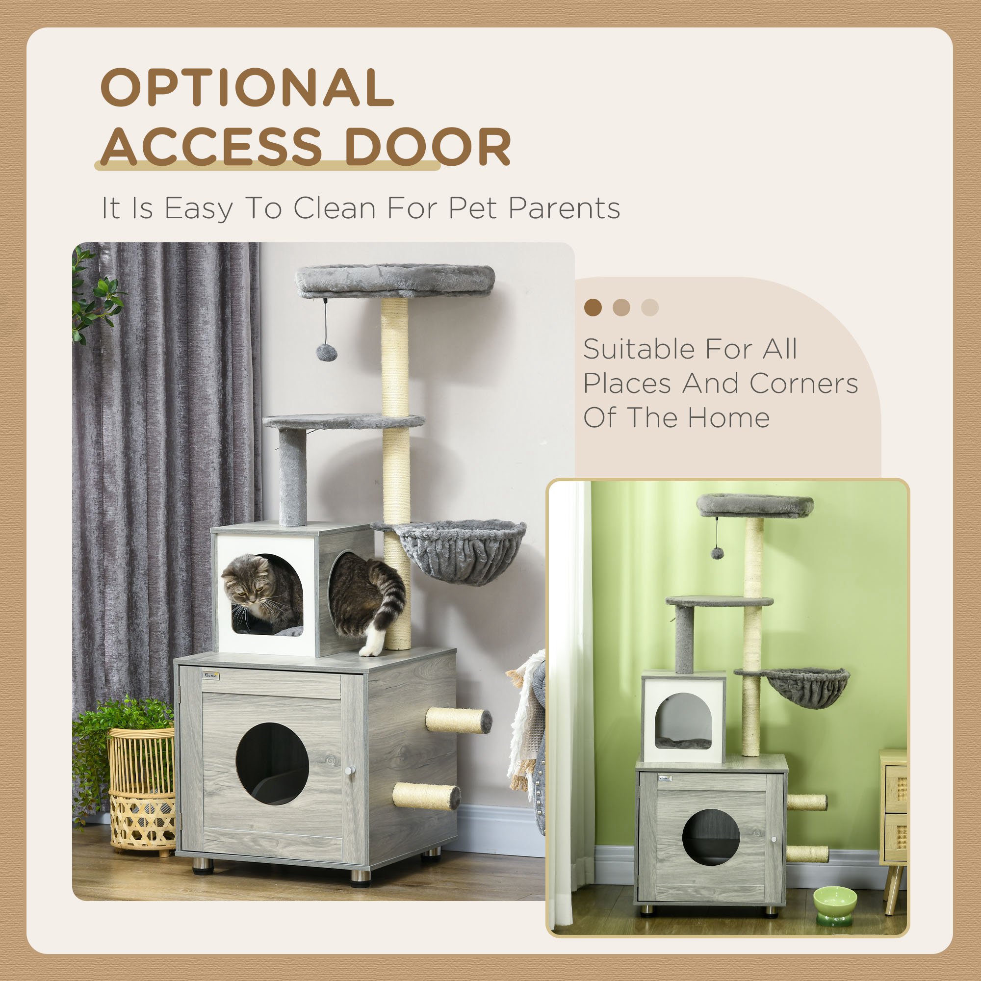 Discover pet paradise with this PawHut cat tree, which also has a litter box. The ultimate haven with different levels for climbing and jumping, whilst the hanging toy ball grabs their attention when feeling playful. Instead of ruining your furniture, they'll dig and shed their claws on the scratching posts. To use the toilet, the enclosed litter box gives them a private space to do so. Then, they'll relax in their comfy hammock or top perch, covered in soft plush for extra cosiness.