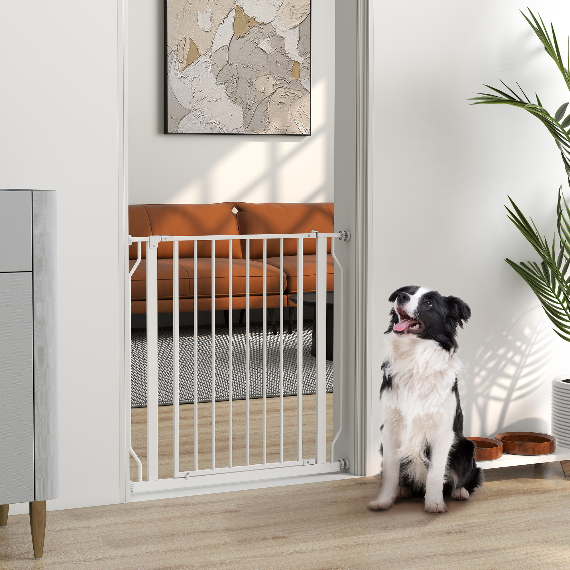 Need to keep pets away from certain places? This PawHut dog gate does the job. Suitable for hallways, doorways and staircases, it has an adjustable width of 75-85 cm – great for different sized openings. Made from strong steel, it stays firmly upright when in use – it can also be pressure-mounted, making it easy to set up; a secure and effective way to stop pets from going where they shouldn't.