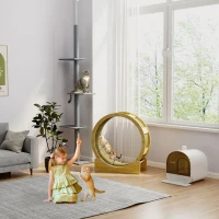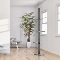 Height is a lovable favorite for cats, and this towering structure is a tall cat tree out there, giving your climbing furry friends an outlet for high-reaching play. The height stays secure with a tension rod that sticks to the ceiling. The surface of the pillar is soft and luxurious for a nice touch against their paws. The platforms have rounded edges for a more comfortable toy. With four platforms, this large cat tree from PawHut makes height a priority.