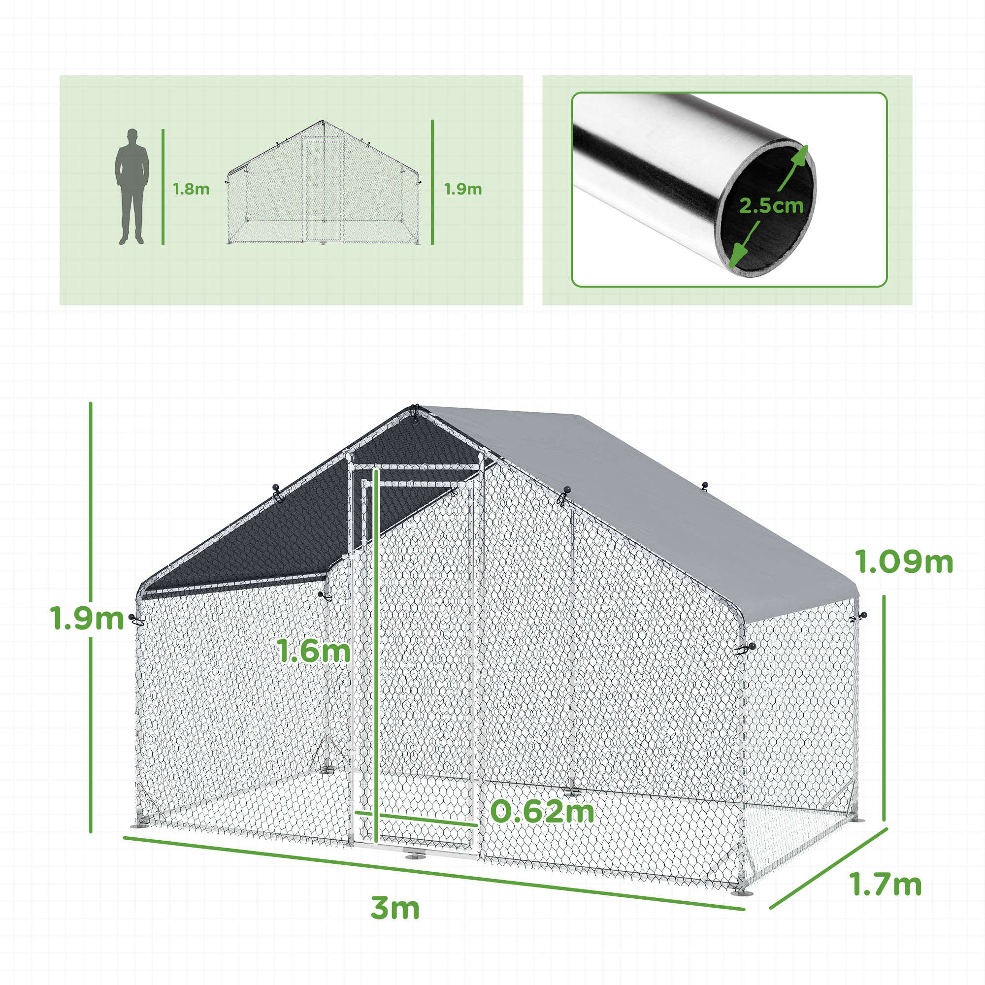 Immerse yourself in the tranquility of country living with the PawHut outdoor cage. This spacious enclosure offers ample room for chickens, rabbits, and ducks to roam freely, while its robust galvanized metal frame and hexagonal wire mesh walls ensure their safety against harsh weather. The weather-resistant cover adds versatility, adapting to various animal needs. Enhance your garden's charm and enjoy serene mornings feeding your beloved animals, enveloped in nature's embrace.