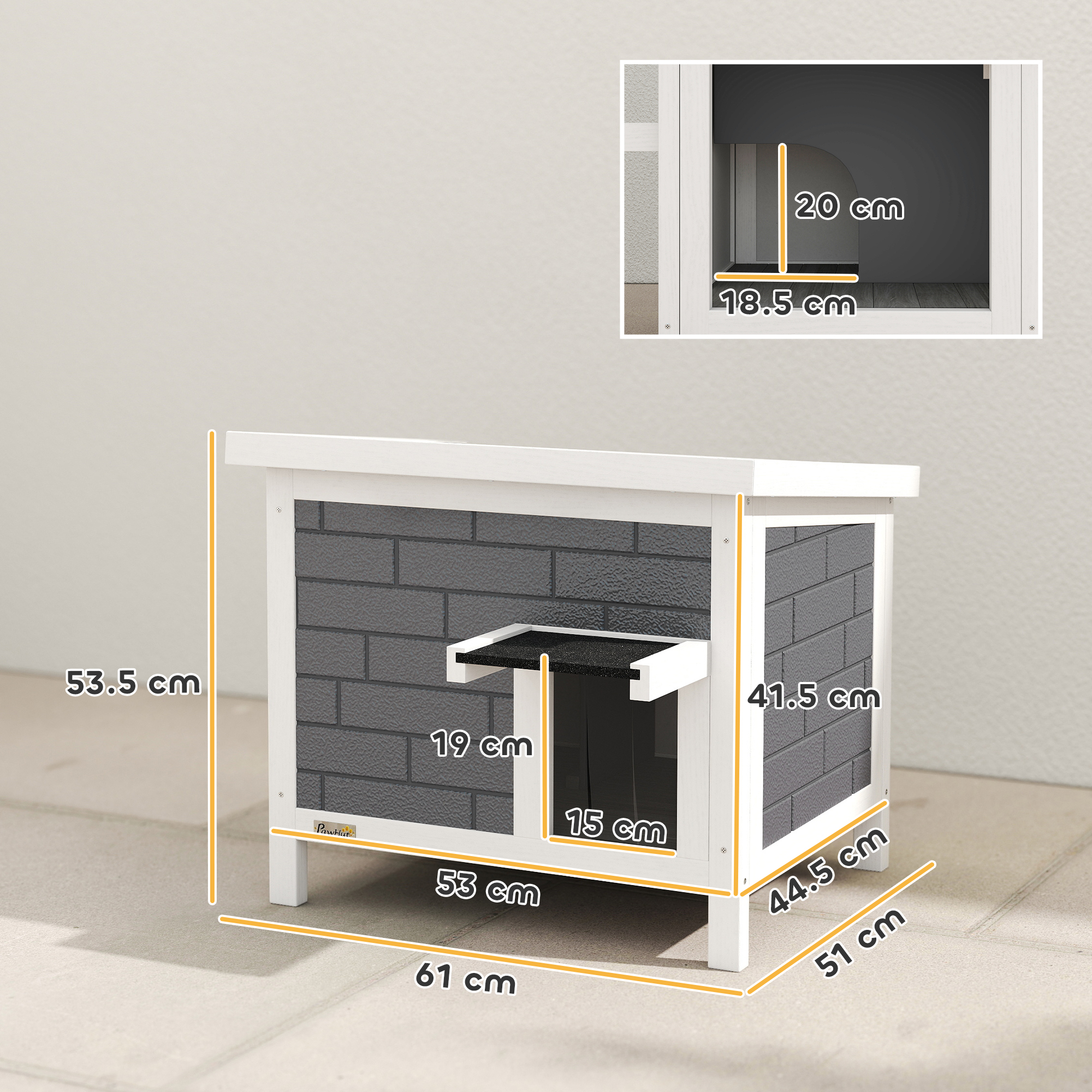 Pet comfort is a priority with the PawHut cat house! Designed for cosy outdoor lounging, its 14 mm insulation provides warmth, while the asphalt roof, door flap and raised floor keep their space dry and secure in any weather. Made from solid wood, it supports up to 5 kg and features an openable roof for easy cleaning and interaction. Great for pets who love the outdoors or for providing a cosy spot for stray animals to relax.