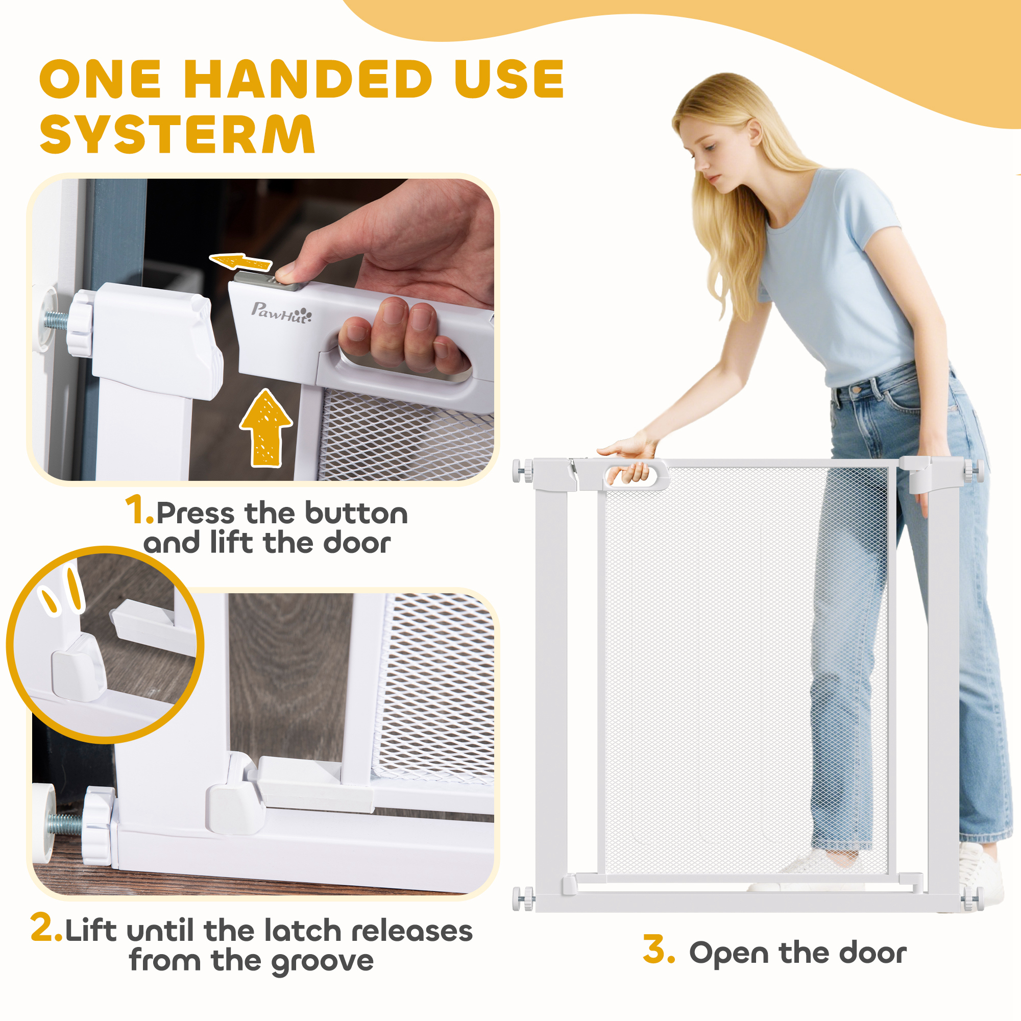Keep dogs from restricted areas with this PawHut safety gate. Suitable for hallways, doorways and staircases, it has an adjustable width of 75-82cm – perfect for different sized openings. This pet gate automatically closes if it's open at less than 90° – no more worrying about leaving it slightly open. It's pressure-mounted, making it easy to set up; a safe and effective way to stop pets from going where they shouldn't.