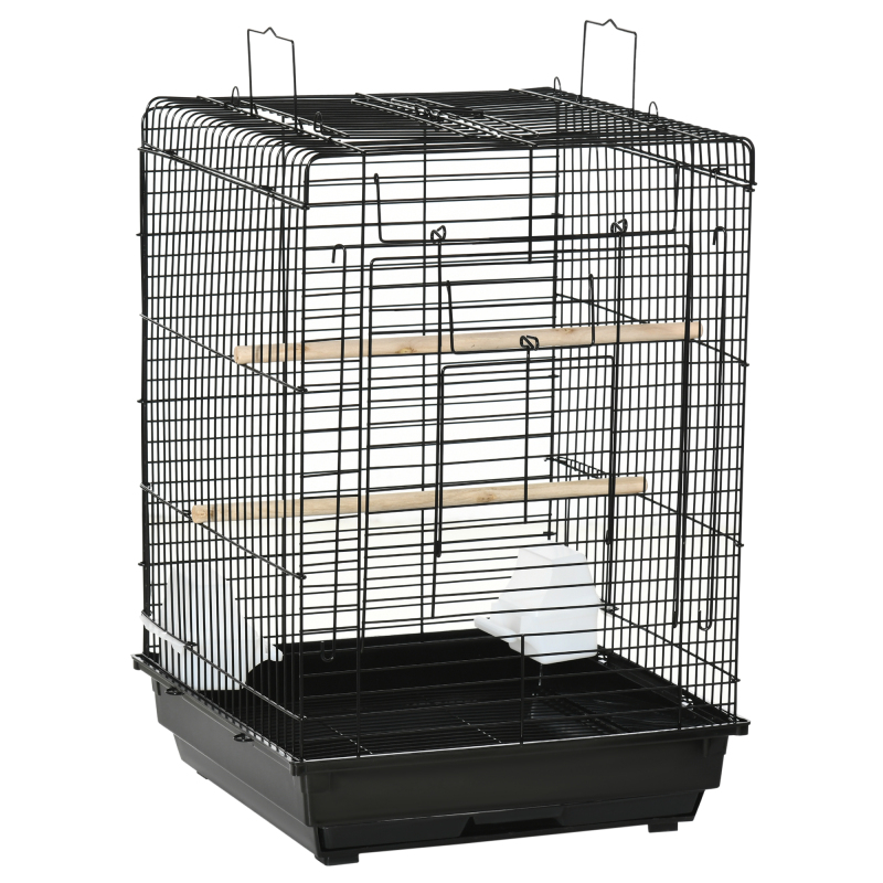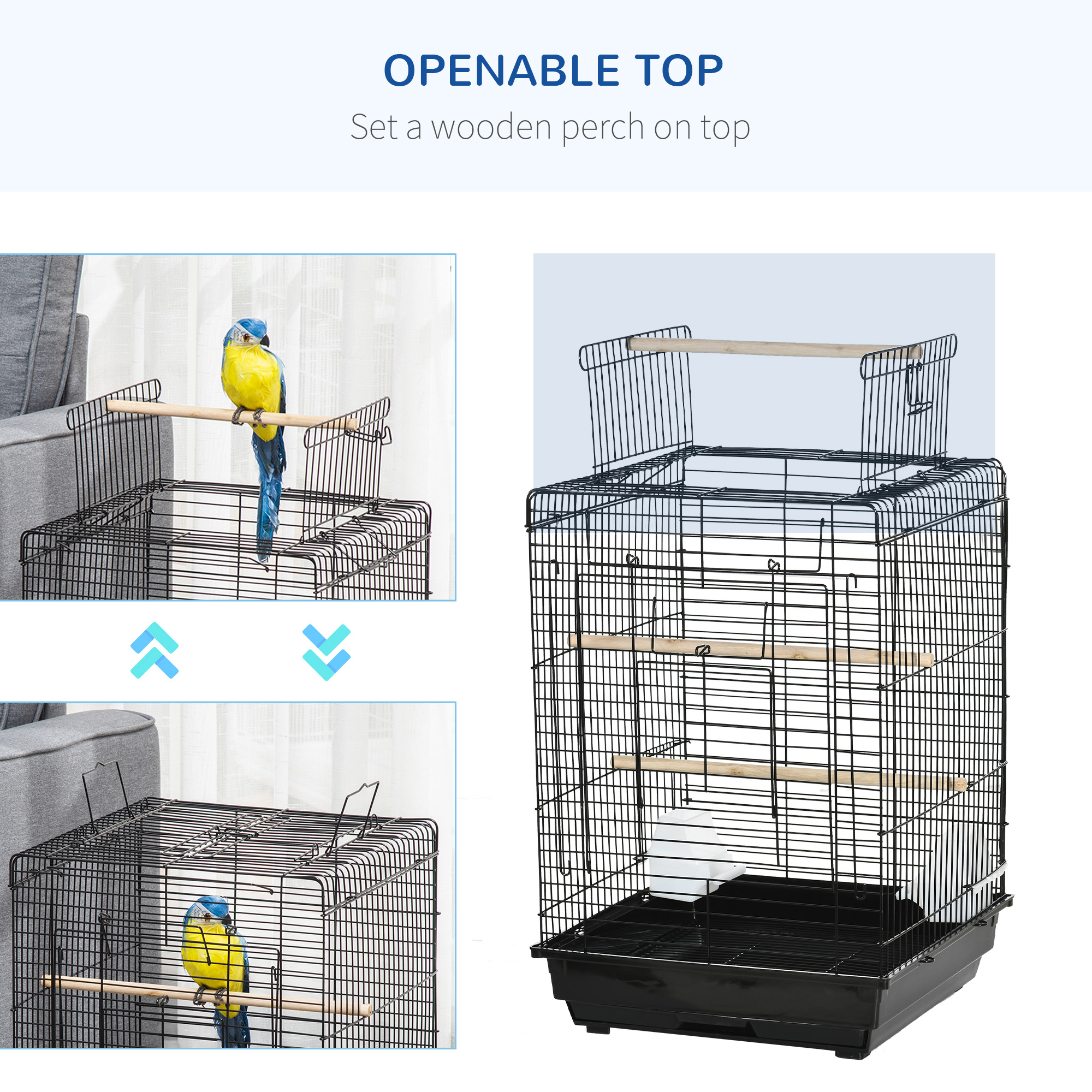 PawHut Steel Bird Cage With Openable Top, Stand, Tray, Handles, Feeding Bowls For Parakeet, Finch - Black