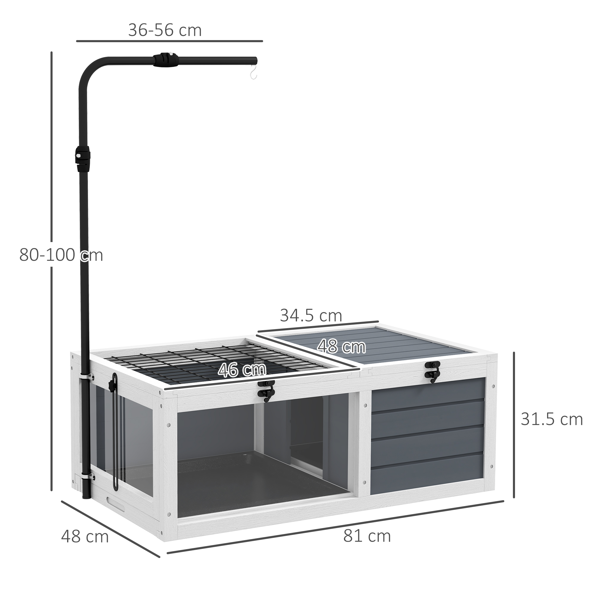 Introducing the PawHut two-room tortoise house – a wonderful habitat for reptiles. With a roomy living space and an expansive run area, it's great for roaming and basking. Achieve the right temperature with the adjustable lamp holder. Cleaning is a breeze, thanks to the double pull-out tray and openable lids, simplifying pet care. Elevate your pet's lifestyle with this delightful home, designed to foster their well-being, allowing them to thrive.