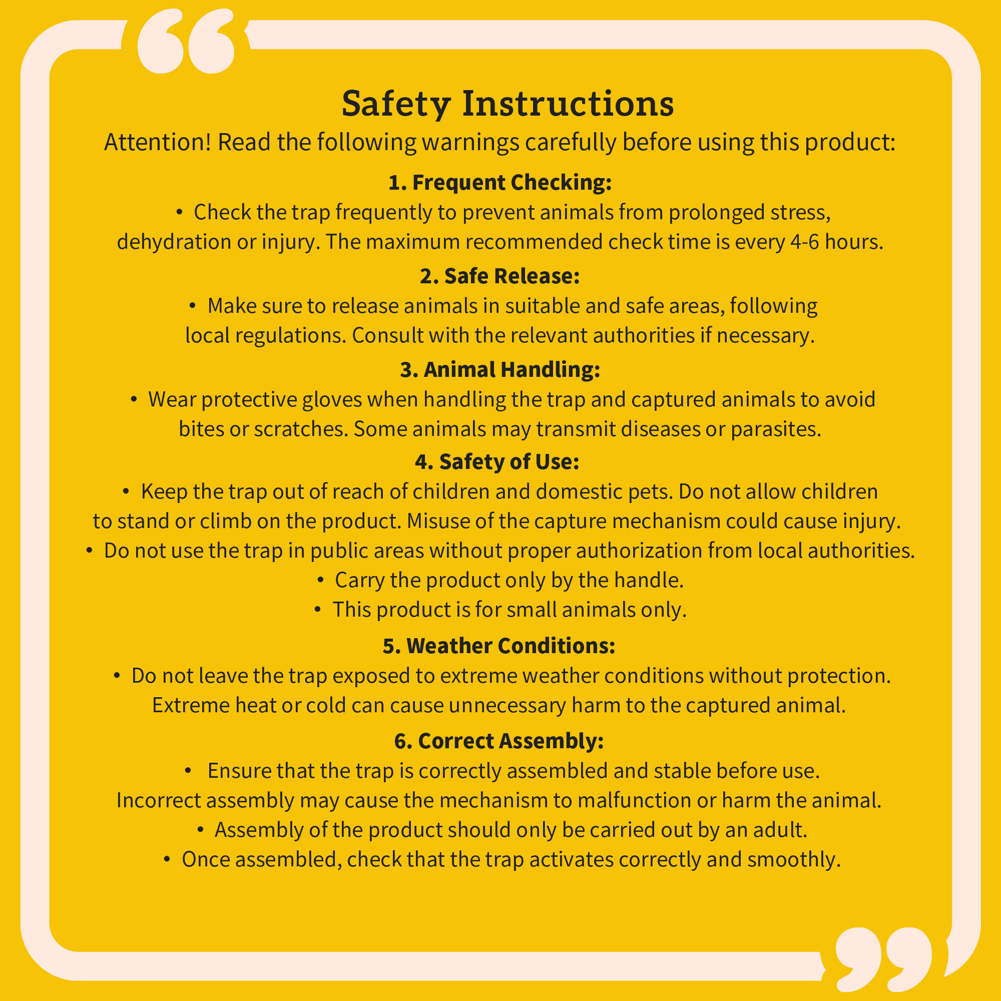 Introducing the PawHut animal trap – a two-door wonder designed for capturing multiple small animals. Its sensitive trigger ensures efficient pray capture. With a top handle for easy transportation, its discreet dark green colour helps confuse wildlife. A humane and efficient way of trapping pests, it's a versatile solution for a variety of needs.