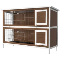 PawHut Wooden Rabbit Hutch Dividers Asphalt Roof For Small Animals & Outdoors, Brown