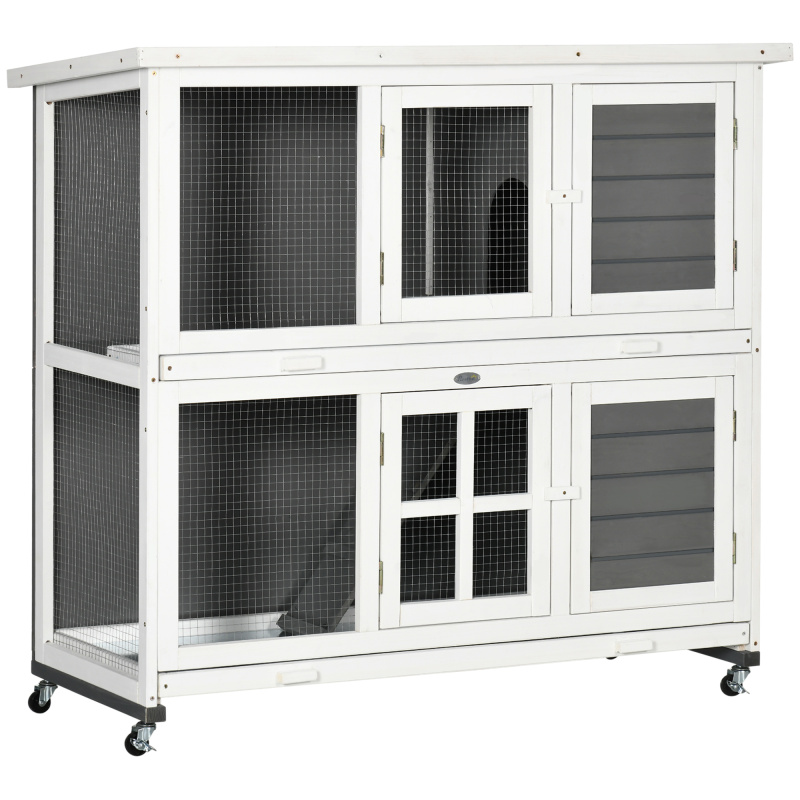 Small pets need protection, safety and comfort – that's what this PawHut rabbit hutch provides. Perfect for rabbits, guinea pigs and other similar animals, it has two tiers, so pets have space and won't feel trapped. There are multiple doors for access, whilst the removable trays make cleaning a breeze. A wooden frame, covered in water-resistant paint, whilst the asphalt roof keeps them sheltered – perfect for outdoors. Finished with four wheels at the bottom for effortless movement.