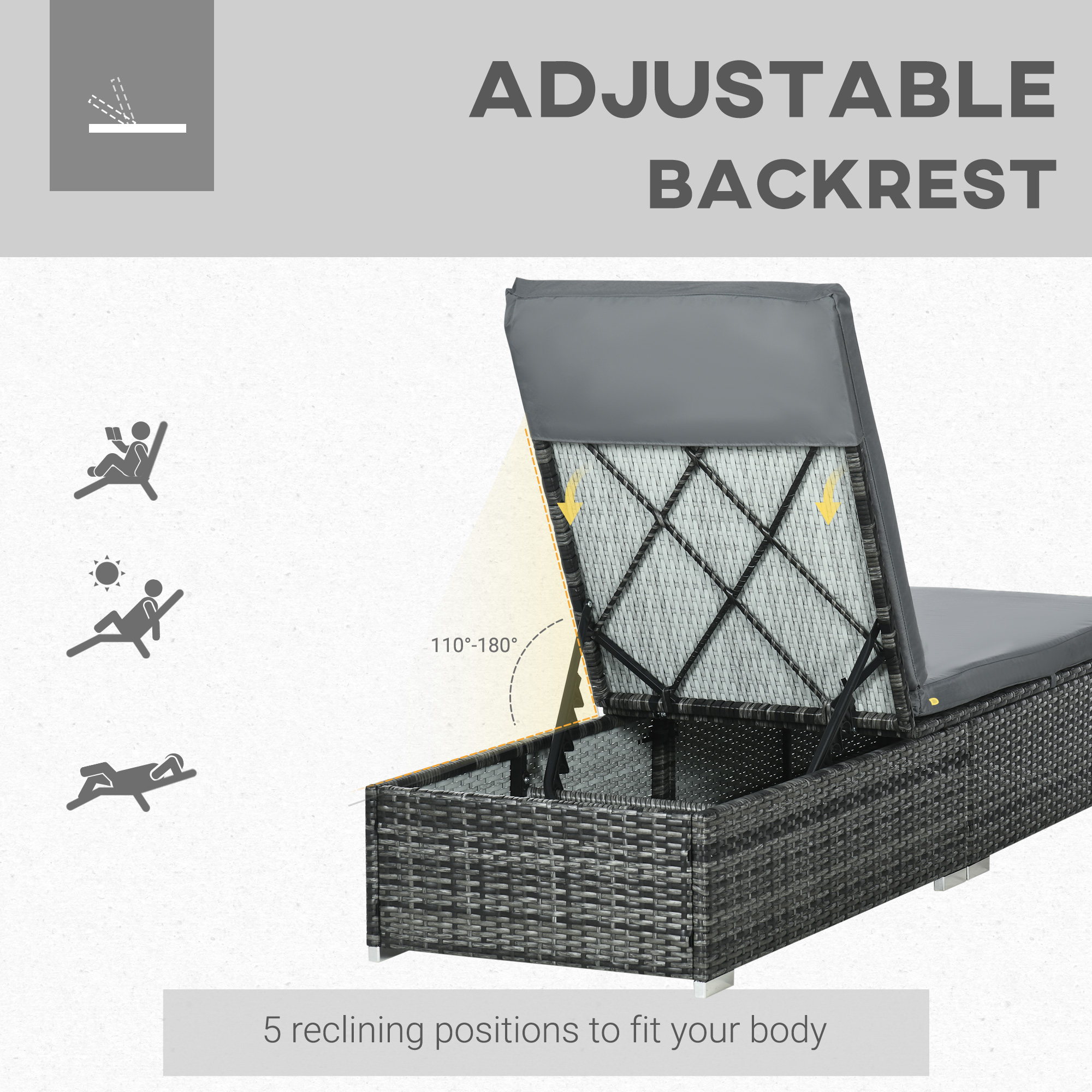 Choose this garden loungers from for the perfect sunbathing partner in the comfort of your own garden. Using galvanised metal for a stable and robust structure, the frame is wrapped in PE wicker rattan, ensuring durability outdoors with little maintenance. The five-position adjustable back allows you to set it to a level which is best for you, whilst a longline padded seat provides all the comfort you need, with 2 pieces lounges allowing you to relax with a friend whenever.