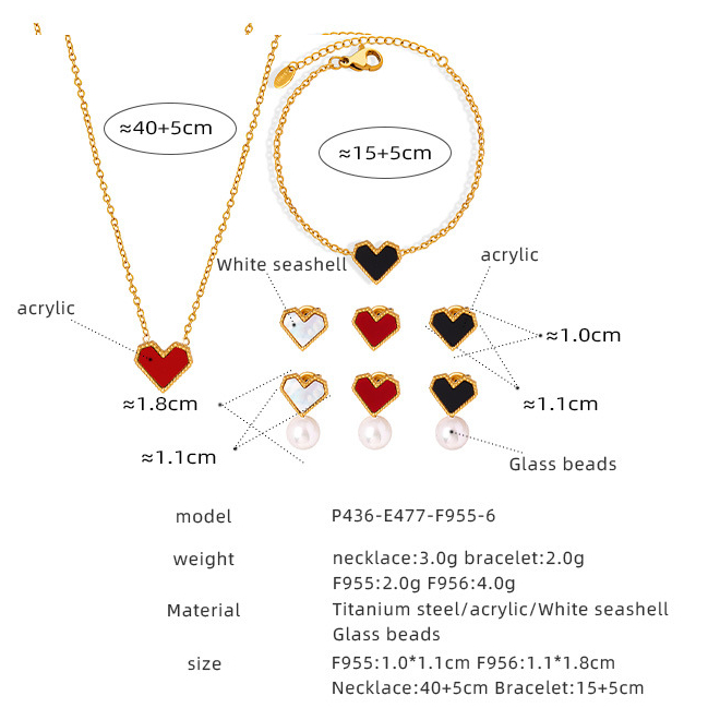 Peach Heart Acrylic Titanium Steel 18K Gold Plated Women's Jewelry Set