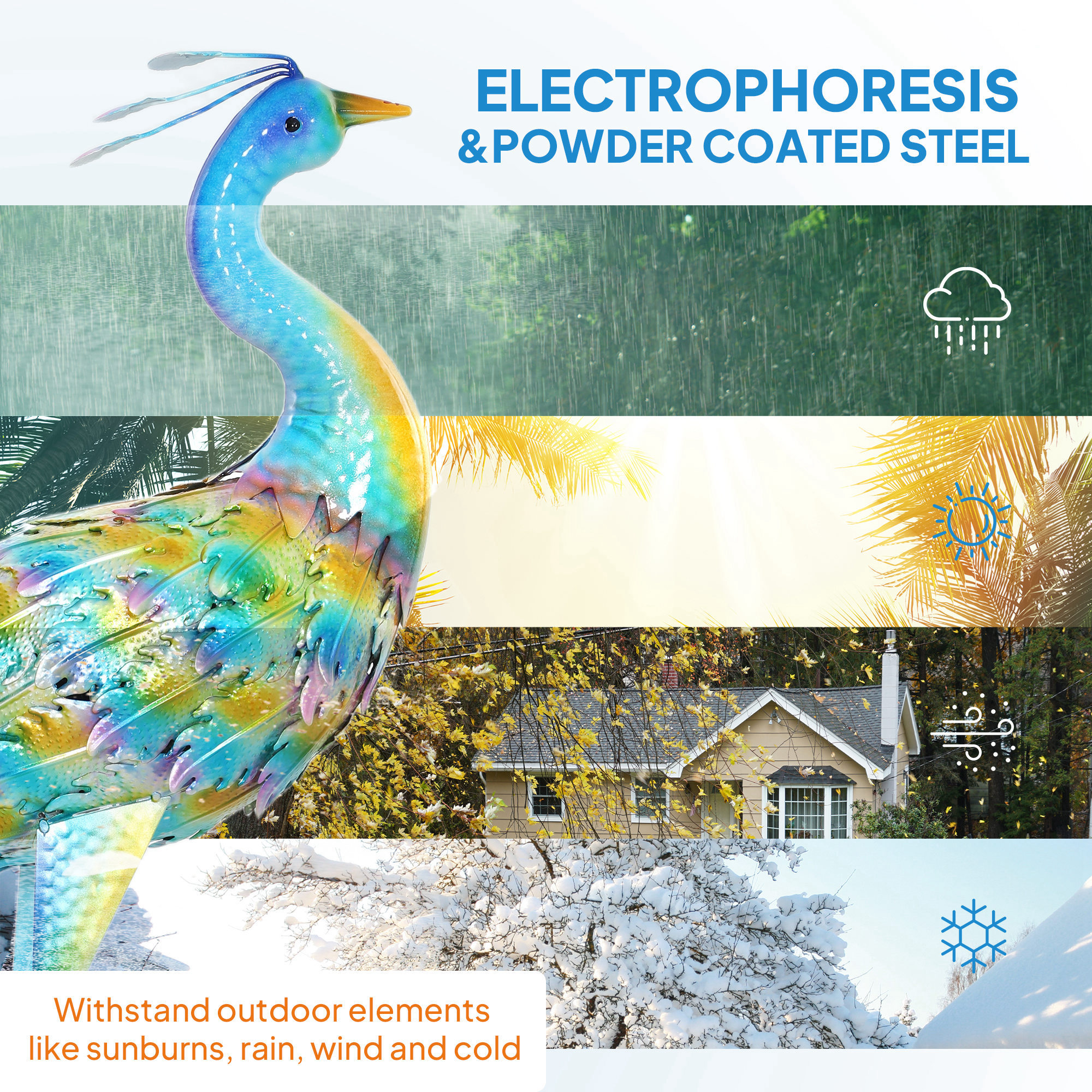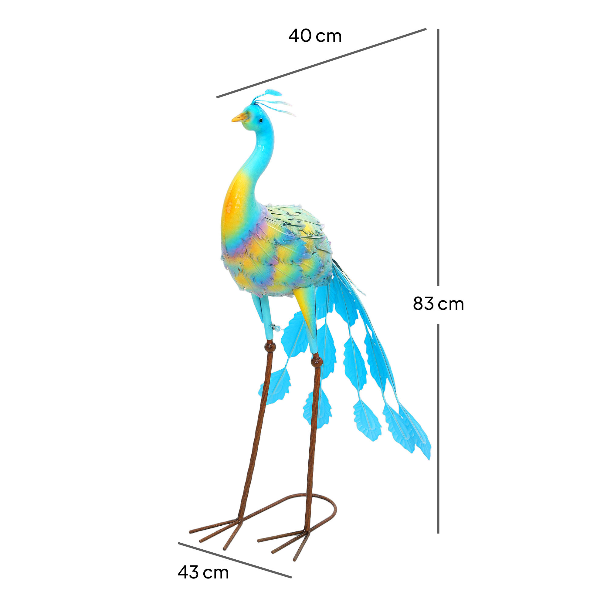 A bit monotonous in the garden? Looking for an eye-catching decorative piece? Let garden art sculpture lights up your garden. Bright colours and vivid details. Built to withstand outdoor elements, this metal garden statue undergoes electrophoresis and powder coating processes, while its stable standing is enhanced by two U-shaped ground stakes.