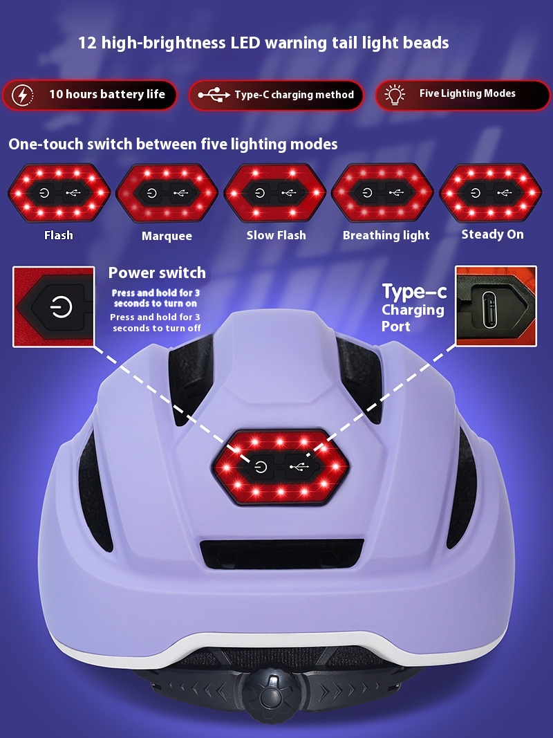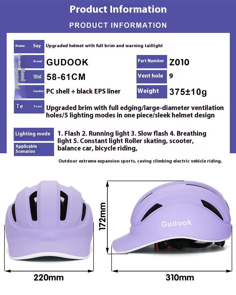 Features: Upgraded hat brim fully covered, large diameter aspirail, 5 lighting modes, integrated molding, helmet appearance streamline design