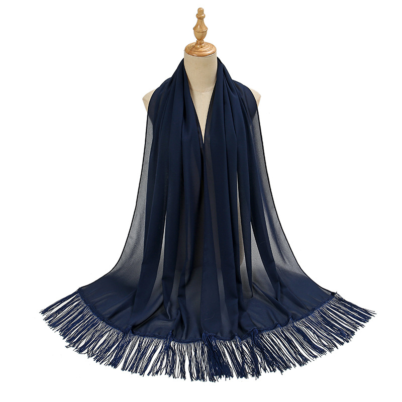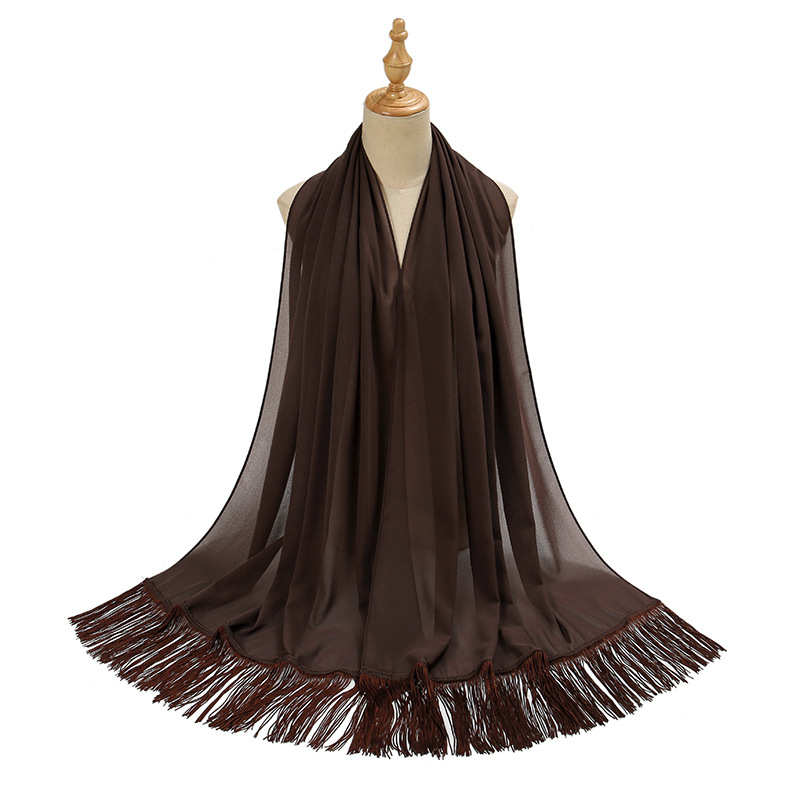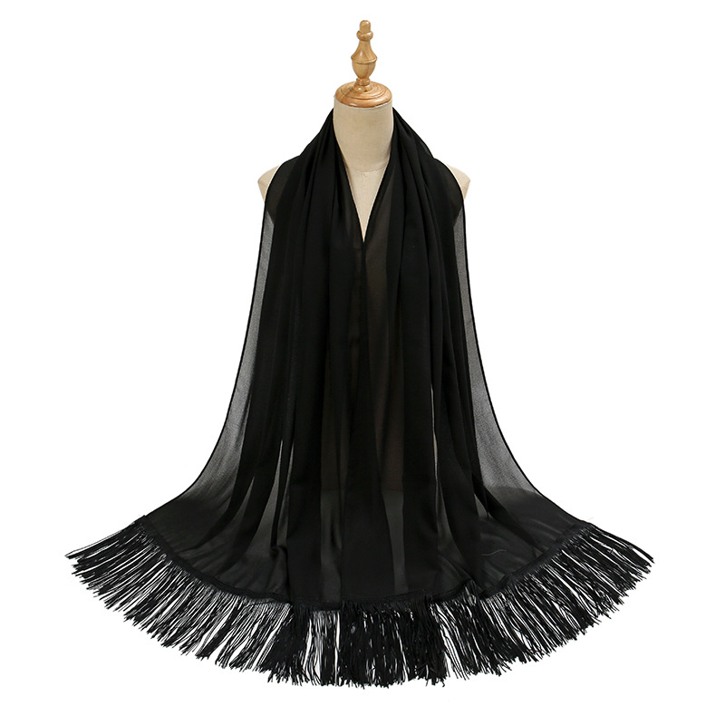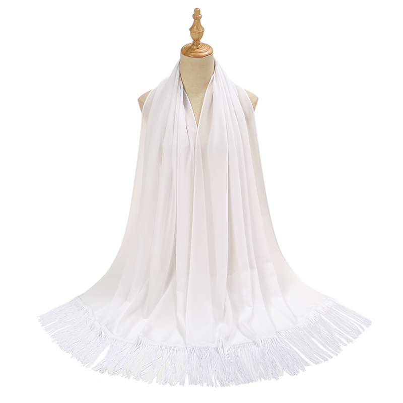 Pearl Chiffon Bubble Towel Long Fringe Decorative Scarf