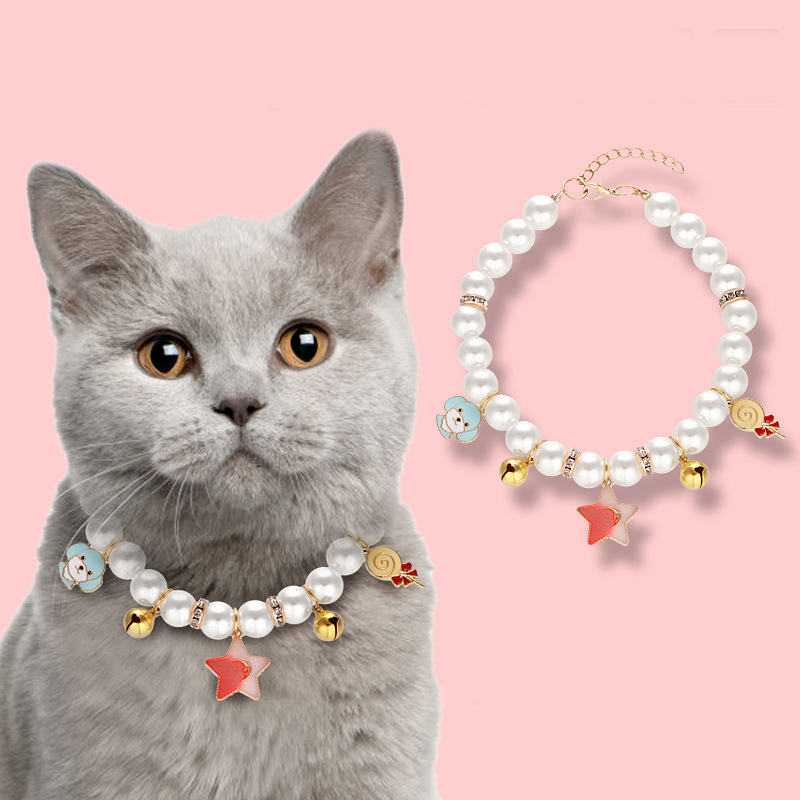 This cat collar set is made of pearl which feels soft and smooth.And it cares for your pet's skin and let your pet wear the collar comfortably.