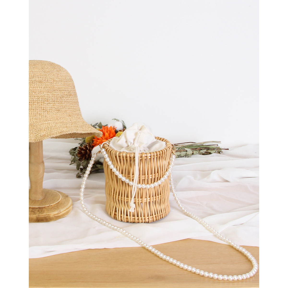 Material: Natural Willow, White PearlWeaving: handmade
