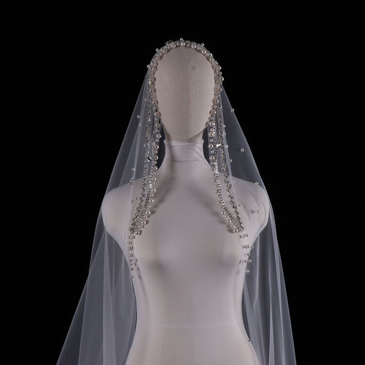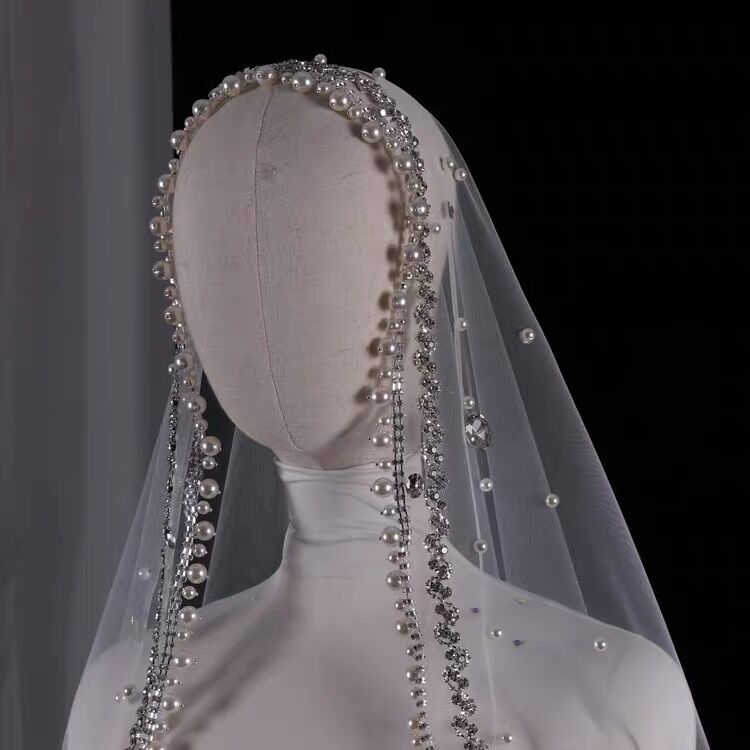 White pearl rhinestone long veil Length: 3 meters X width 3 meters