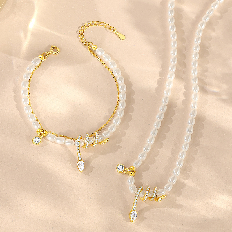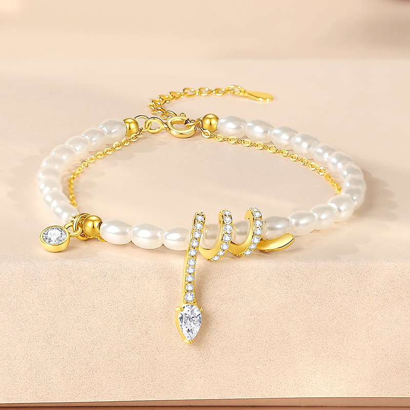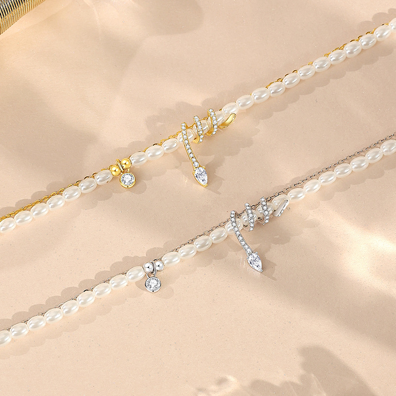 Color: Pearl snake bracelet 14k gold, pearl snake bracelet white gold color