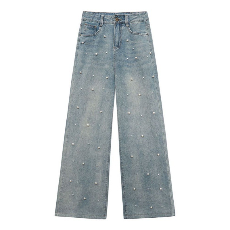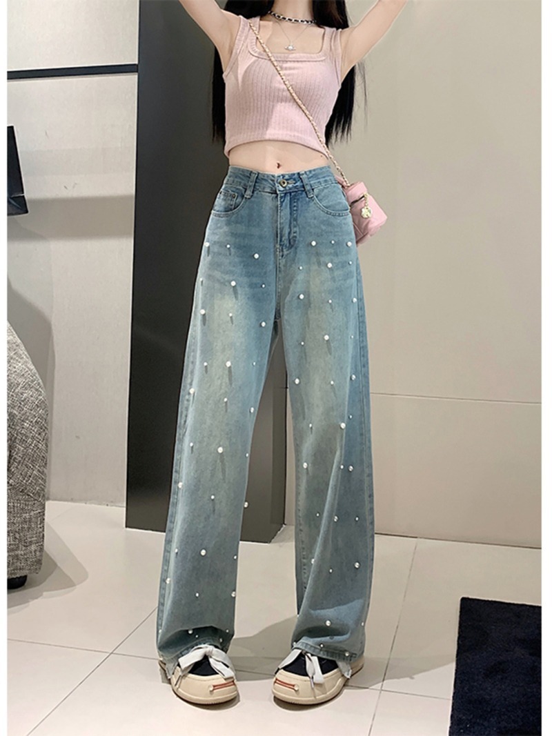 Pearl Straight Jeans High Waist Slim-fit Wide-leg Pants Women
