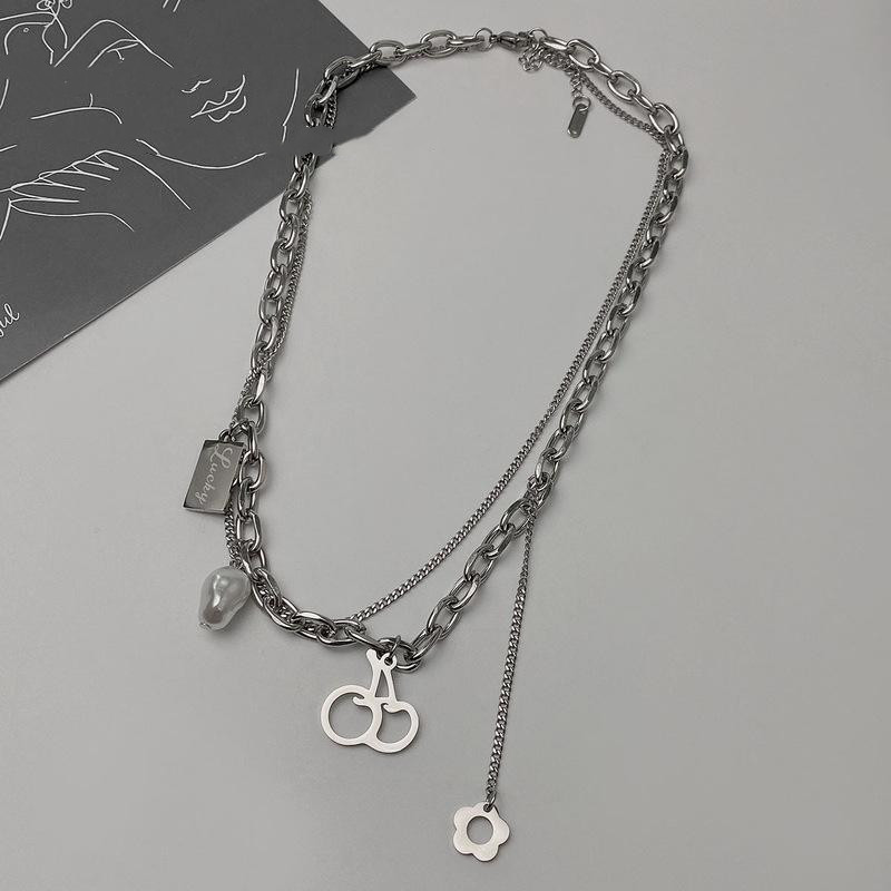 Pearl Titanium Steel Hip Hop Multi-layer Stitching Necklace