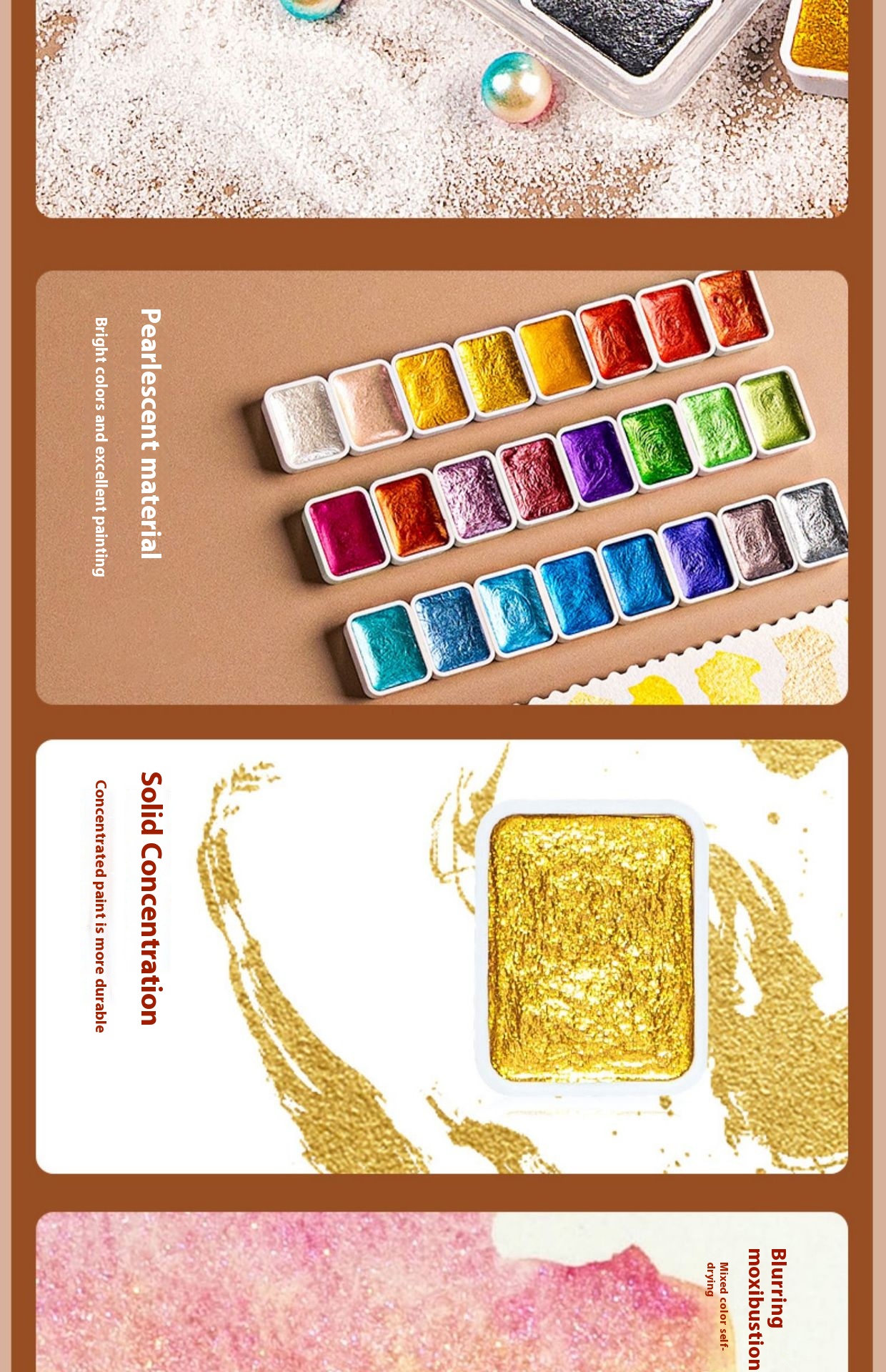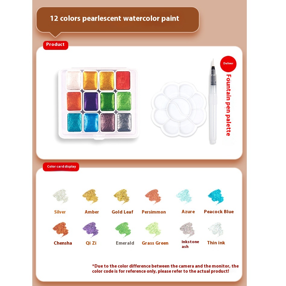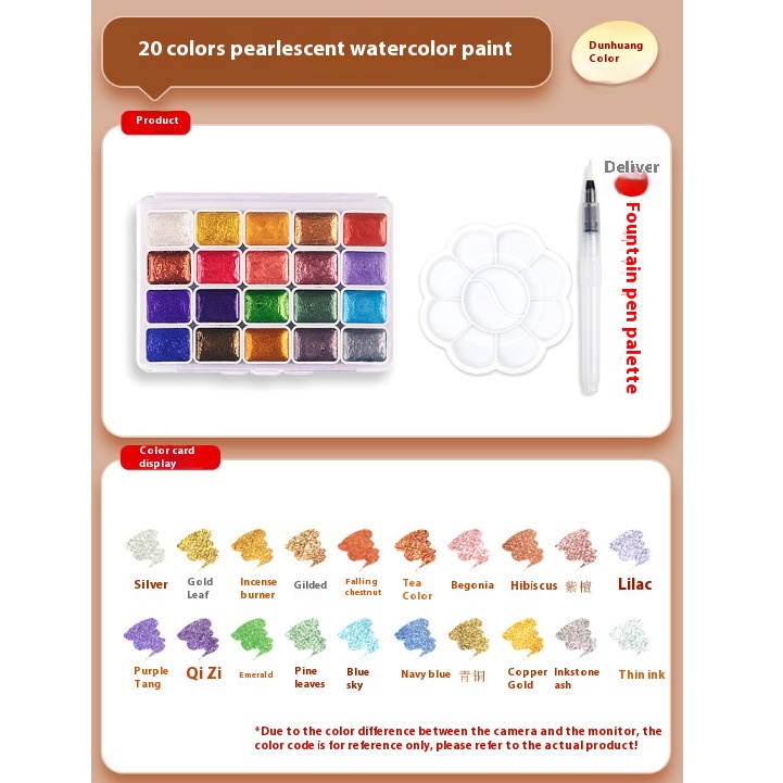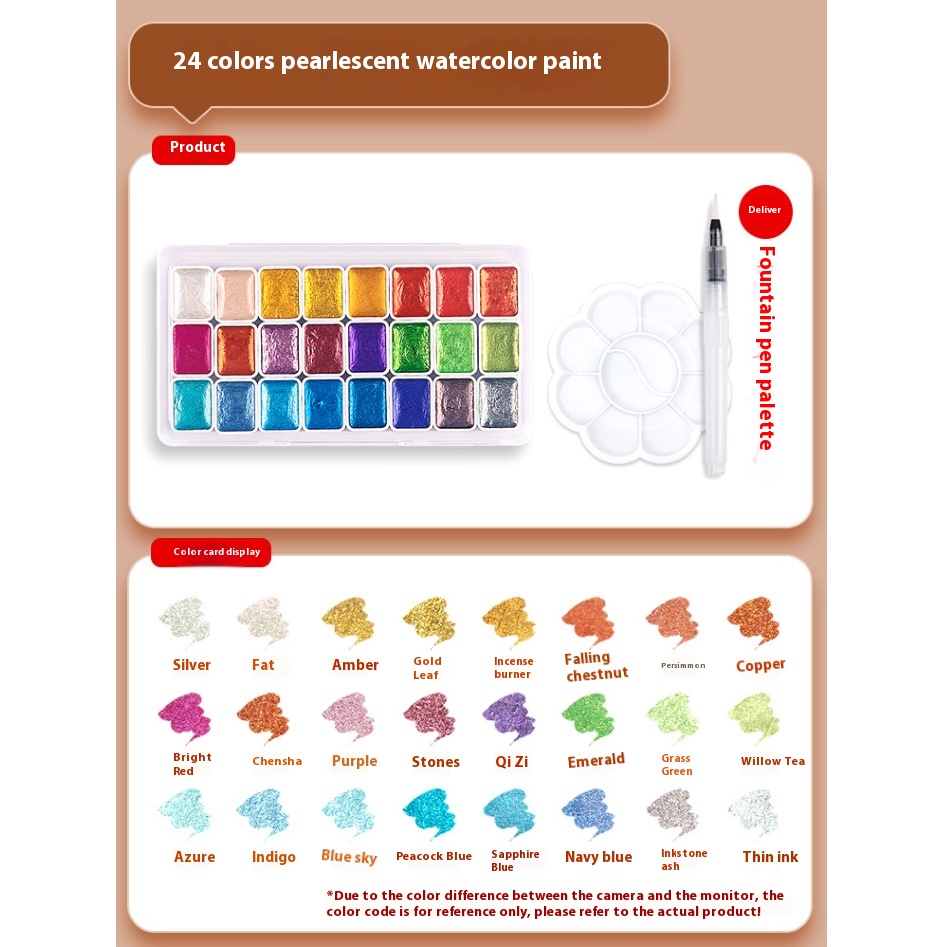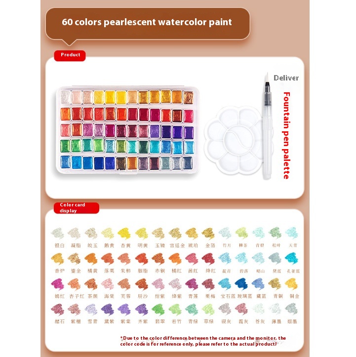 Color: two colors [gold foil silver white] a total of 10ml, nuevedeer gold and silver 6 color pearlescent 1ml-iron box, pearlescent 12 color pigment [upgraded], pearlescent 20 color pigment [upgraded]], luoshen 20-color watercolor, fresh 20-color watercolor, pearlescent 24-color pigment [upgraded], pearlescent 60-color pigment [upgraded], Luoshen 20-color watercolor palette ball pen, fresh Wind 20 colors watercolor palette ball pen, 20 colors packed in plastic box fountain pen ball pen, 24 colors packed in plastic box fountain pen ball pen, 60 colors packed in plastic box fountain pen ball pen, 36 colors pearlescent [1.7ml] Acrylic boxed, 36-color pearlescent watercolor palette ball pen, Tengwang Pavilion smoky 6-color pearlescent 1ml-iron box, Lanting Mountain Field 6-color pearlescent 1ml-iron box, Luo Shenfu fairy 6-color pearlescent 1ml-iron box, empty iron box [magic color cloud color], empty iron box [pink], empty iron box [colorful color], empty iron box [cloudy blue], pearlescent 12 color brush palette, pearlescent 20 color brush palette, pearlescent 24-color brush palette, pearlescent 60-color brush palette, 36-color pearlescent [1.7ml] Acrylic boxed 8-piece set, pearlescent watercolor 20-[fog Blue] Iron boxed, pearl watercolor 20 colors-[colorful] Iron boxed, Pearl watercolor 24 colors-[fog Blue] Iron boxed, Pearl watercolor 24 colors-[colorful] Iron boxed, 12 colors pearlescent watercolor diy colorful paper jam watercolor paper plum plate ball pen, 20 colors pearlescent watercolor diy colorful paper jam watercolor paper plum plate ball pen, 24 colors pearlescent watercolor diy colorful paper jam watercolor paper plum plate ball pen, 60 colors pearlescent watercolor diy colorful paper jam watercolor paper plum plate ball pen, 12 colors pearlescent watercolor 8 pieces diy suit, 20 colors pearlescent watercolor 8 pieces diy suit, 24 colors pearlescent watercolor 8 pieces diy suit, 60 colors pearlescent watercolor 8 pieces diy suit, special for Pearlescent Pigment [large, medium and small] Blue, glaze pearlescent 24 color 1ml-iron box, porcelain pearlescent 24 color 1ml-iron box, bronze pearlescent 24 color 1ml-iron box, Dunhuang pearlescent 24 color 1ml-iron box, imperial Palace pearlescent 24 color 1ml-iron box, Samsung pearlescent 24 color 1ml-iron box, brocade pearlescent 24 color 1ml-iron box, dazzling pearlescent 24 color 1ml-iron box