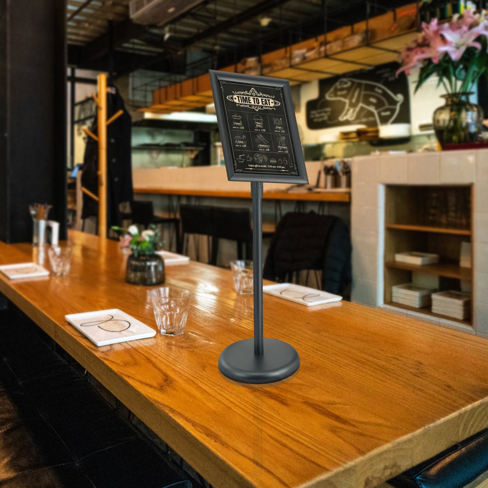 360° Rotatable Sign Stand for 8.5" x 11": VEVOR 8.5 x 11-inch pedestal sign holder is perfect for displaying various printed inserts, such as menus, signs, and posters. The sign frame can be rotated to any angle, allowing for both vertical and horizontal views to accommodate your diverse display needs.