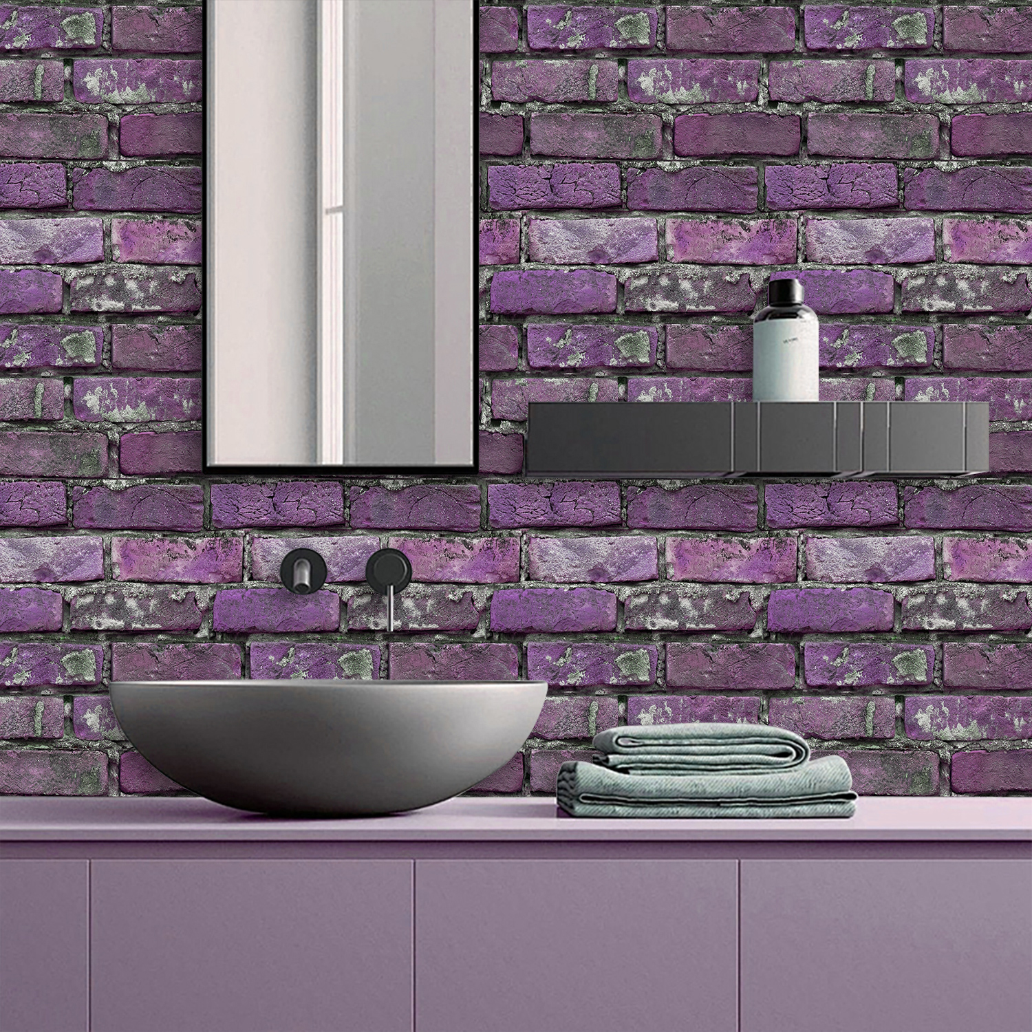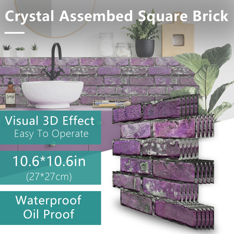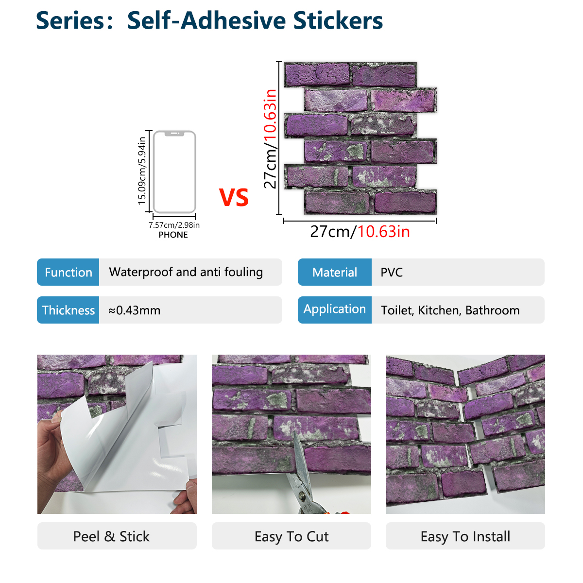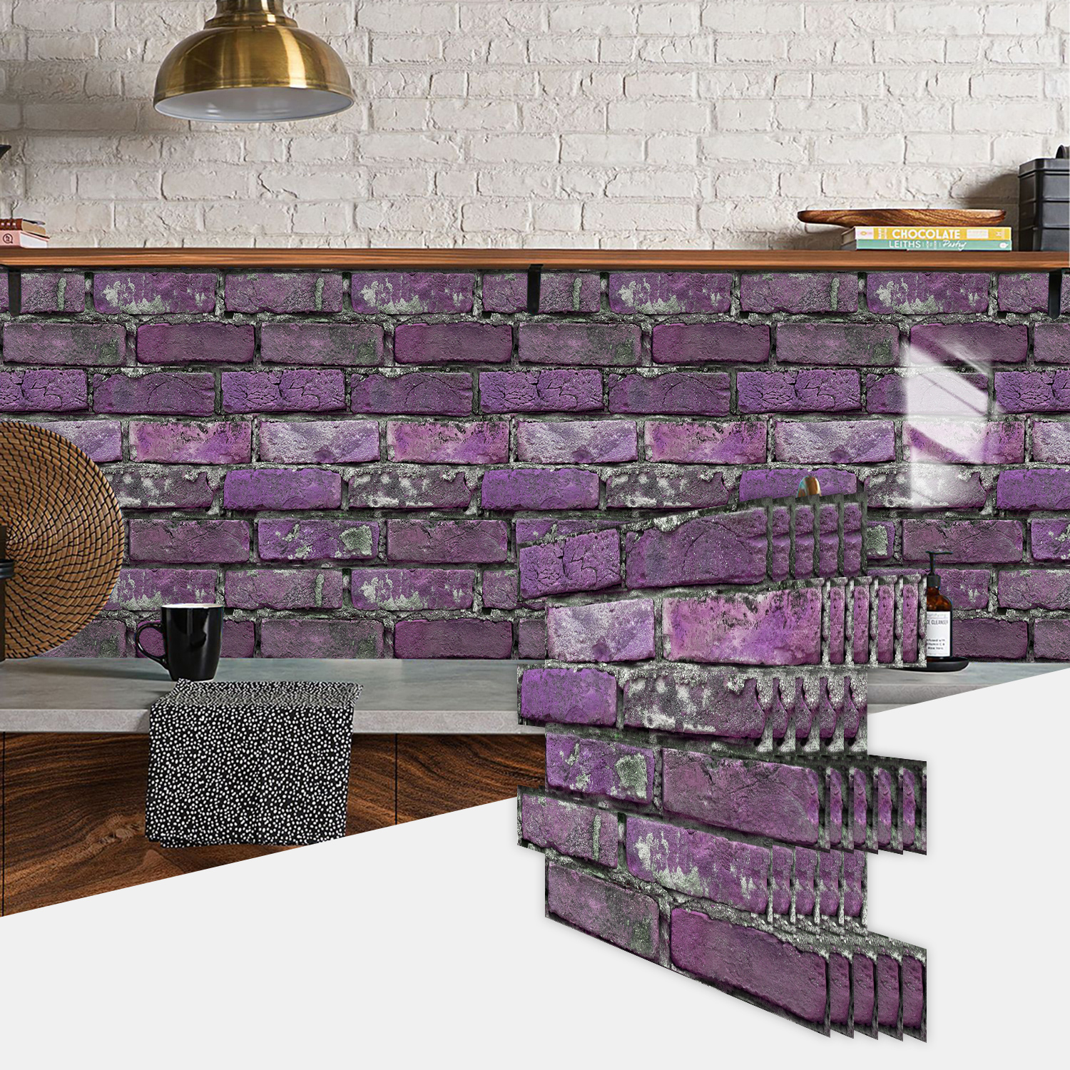 Peel And Stick Tile Wall Decoration PVC Purple Brick Wall Tile Splash-proof Self-adhesive Wall Stickers - Durable, Waterproof, Suitable For Kitchen, Toilet, Bathroom Wall Decoration Materials