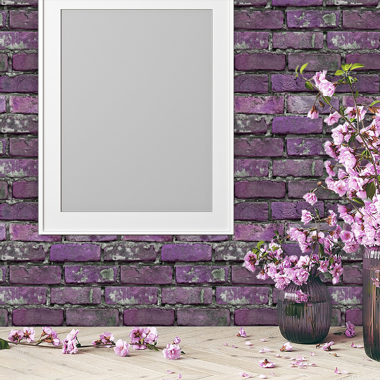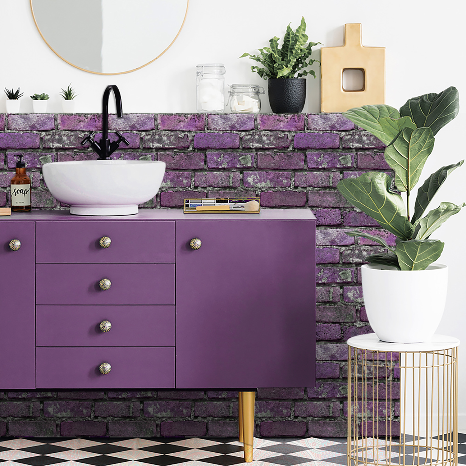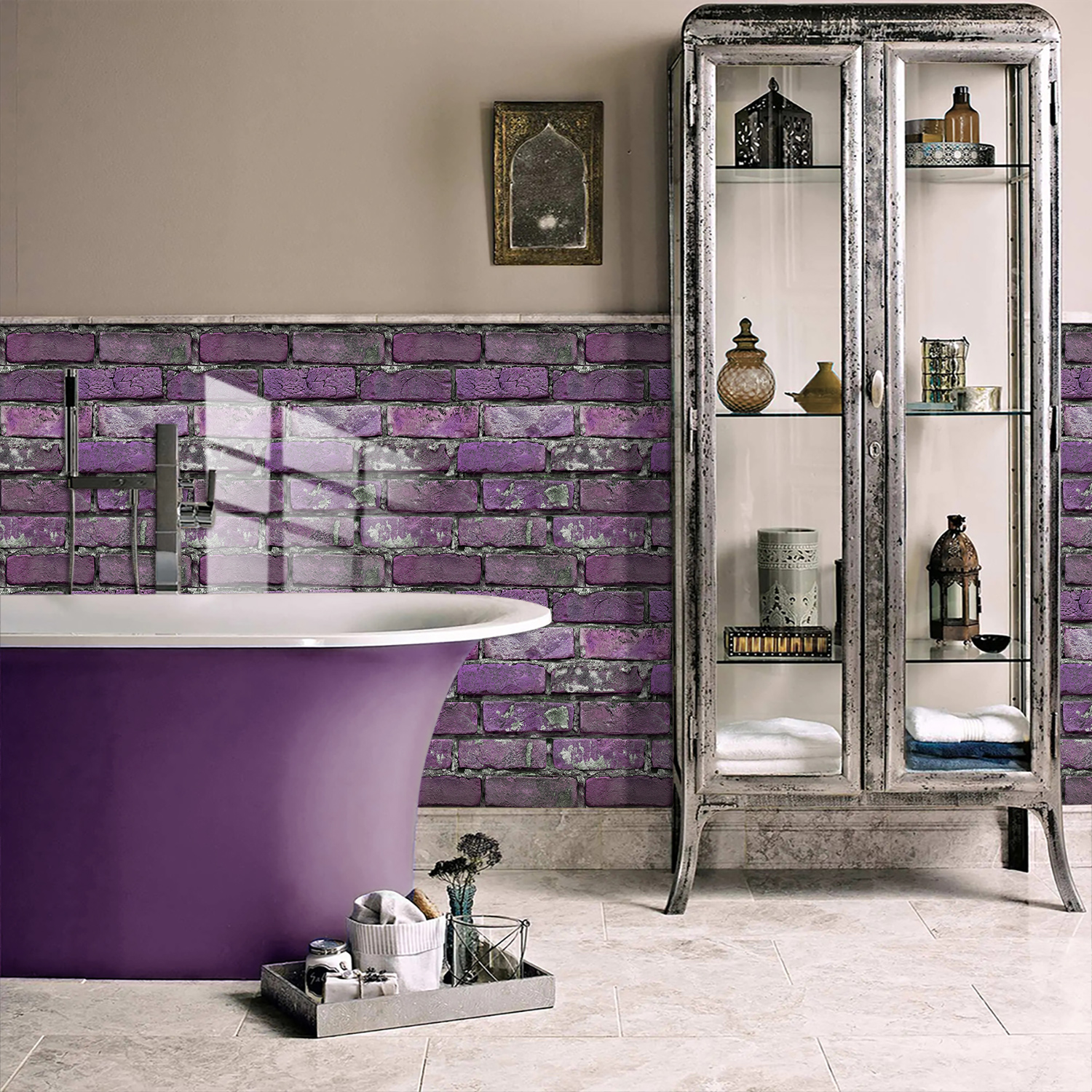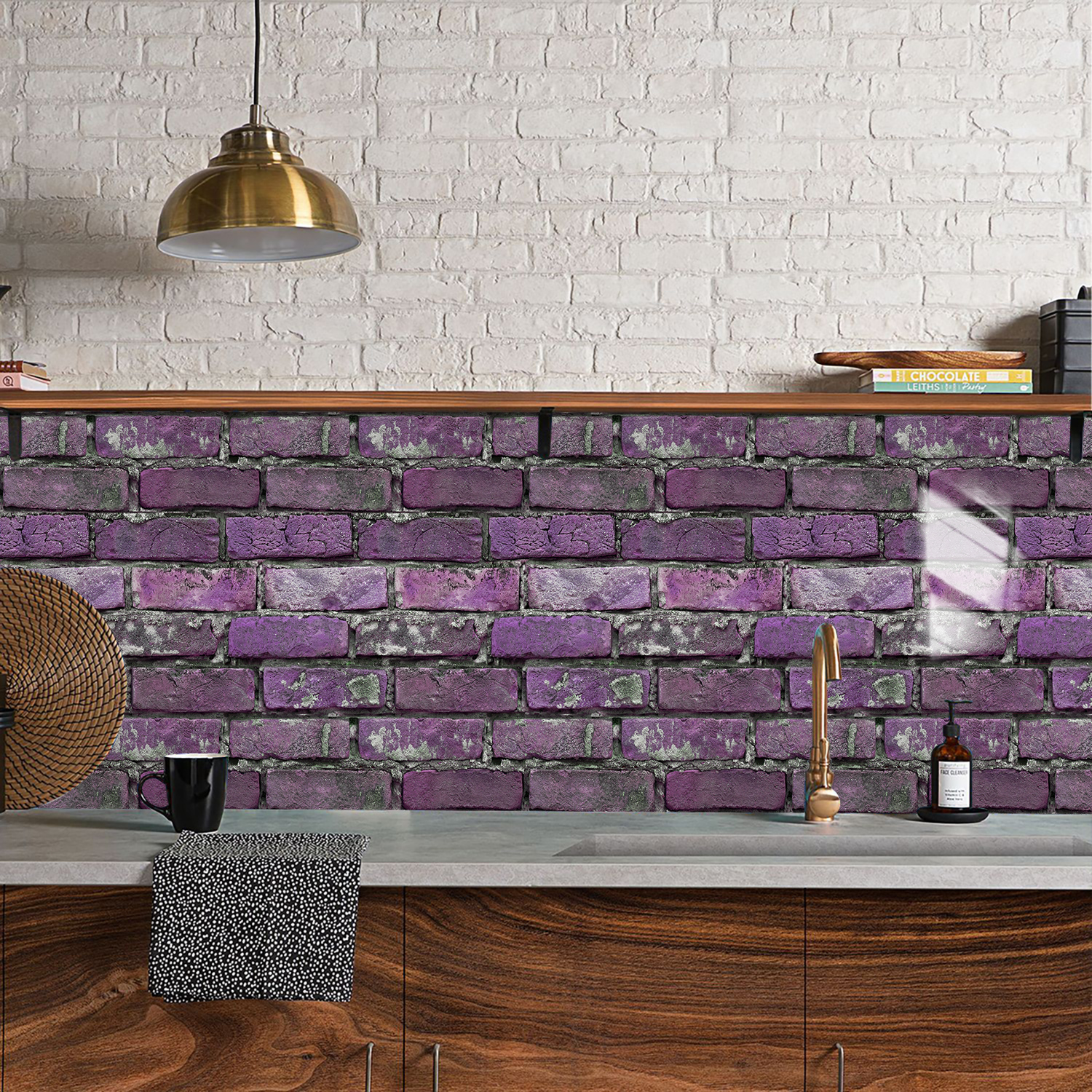 Peel And Stick Tile Wall Decoration PVC Purple Brick Wall Tile Splash-proof Self-adhesive Wall Stickers - Durable, Waterproof, Suitable For Kitchen, Toilet, Bathroom Wall Decoration Materials