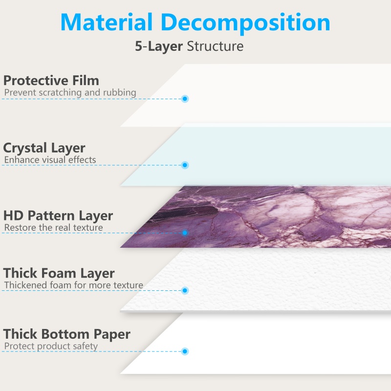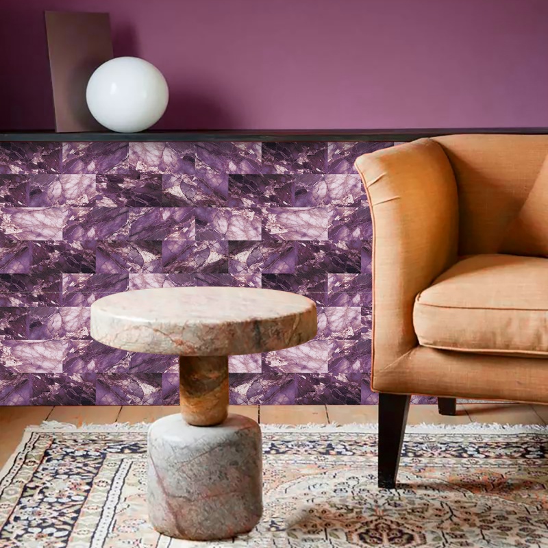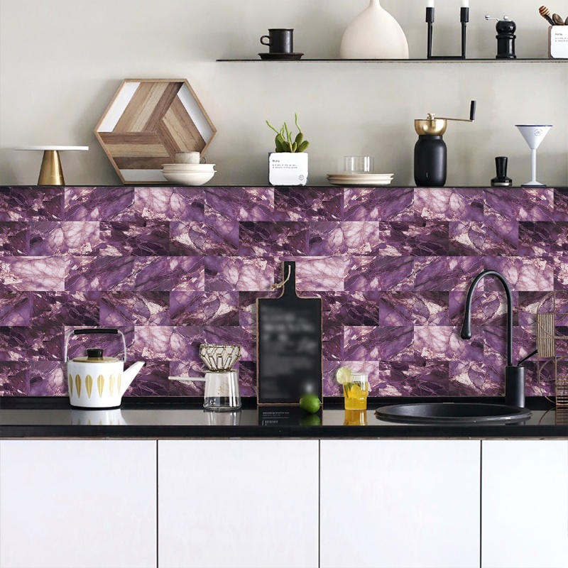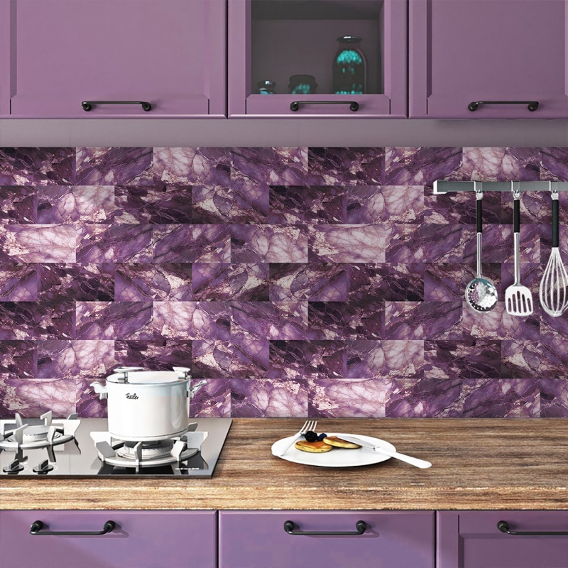 Peel And Stick Wallpaper Marble Wall Tiles, Waterproof Glossy Wall Stickers And Wall Panels, Dreamy Purple Imitation Marble, PVC Shower Wall Panels