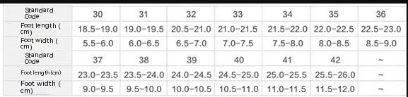 Size: 34, 35, 36, 37, 38, 39, 40, 41, 42