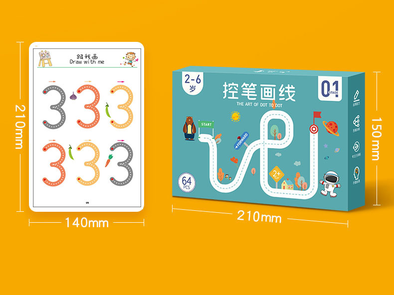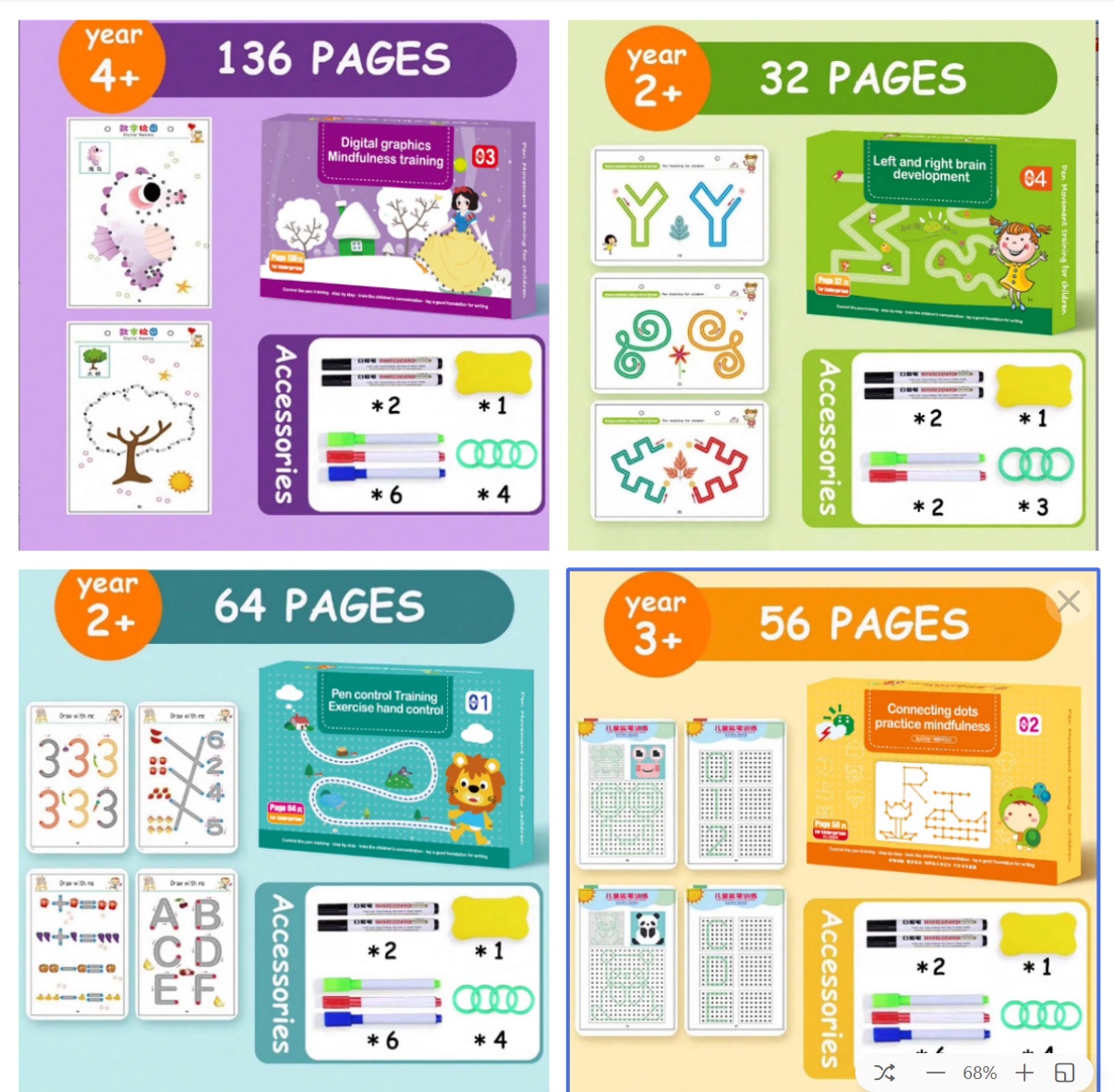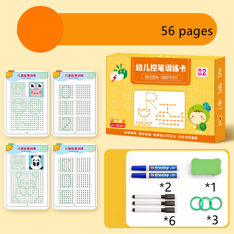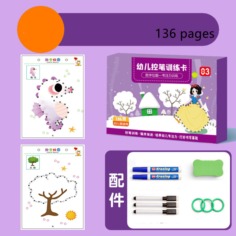 Color: Pen training 60 pages/30 sheets+8 pens+1 eraser, 56 pages/28 sheets+8 pens+1 eraser for drawing dots, 136 pages/68 sheets+8 pens+1 eraser for digital drawing, left and right brain development 32 Pages/16 Sheets + 2 Pens + 1 Erase