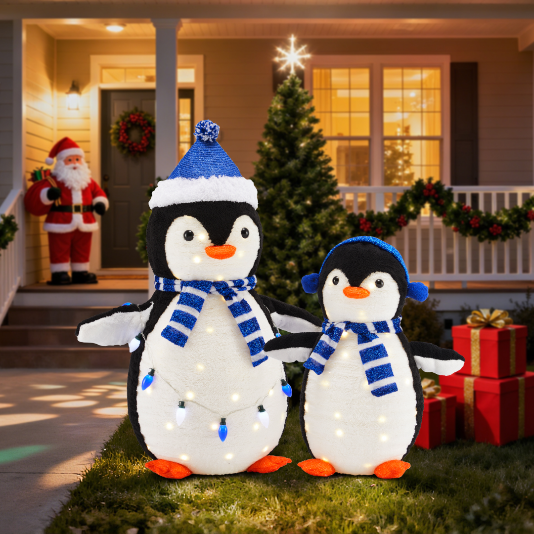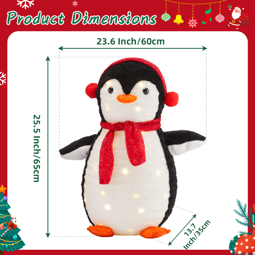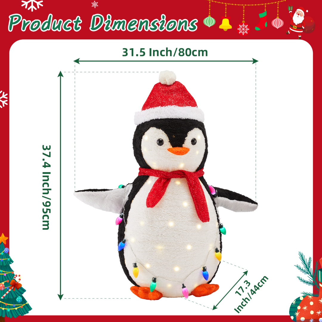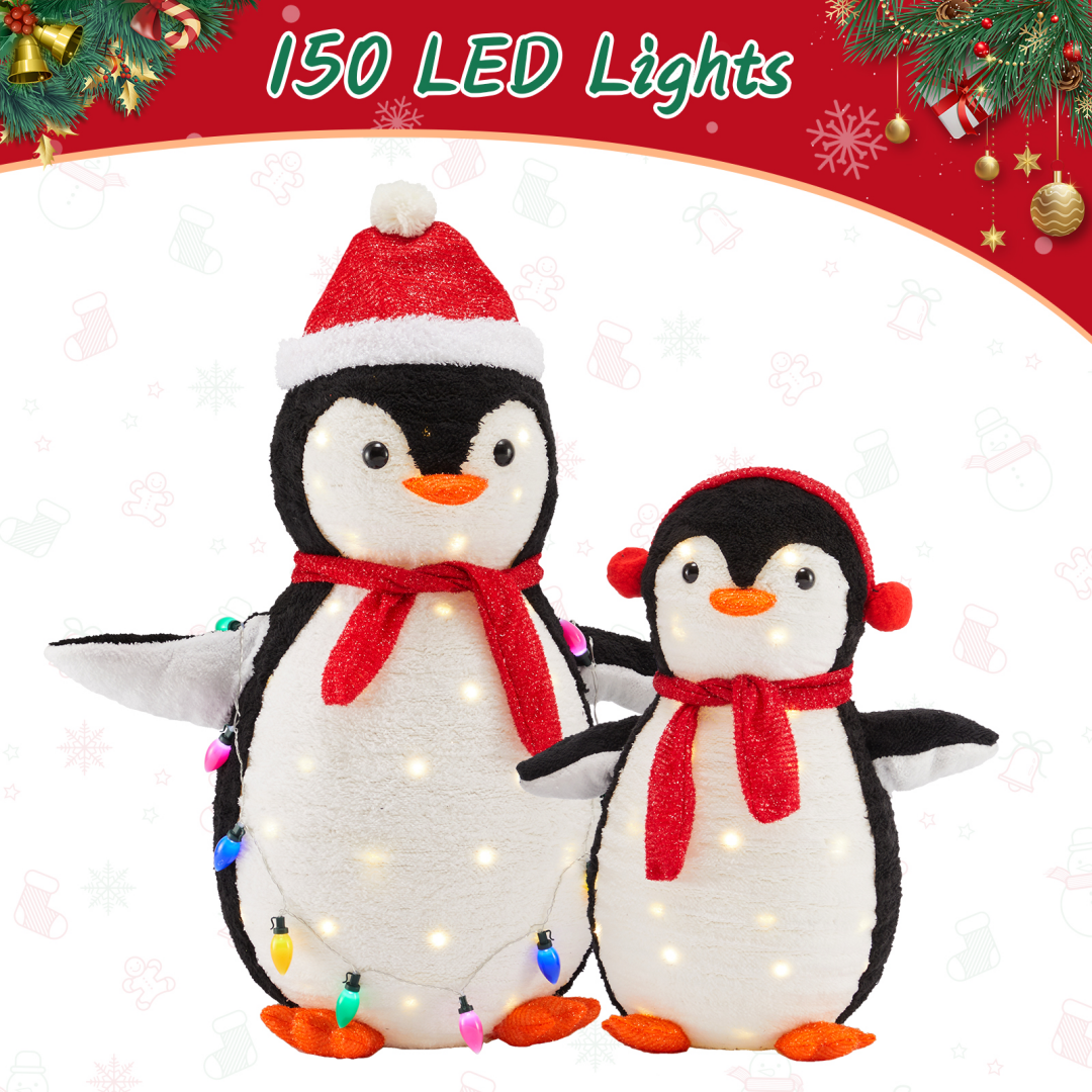 [150 Energy-saving multi-color LED lights] Pre-string 150 eco-friendly LED lights to emit vibrant and energy-saving light. Fairy-tale-like lights beautifully illuminate the penguins from within, and they charmingly hold a string of extra lights, adding a dazzling touch of color to your winter night.
