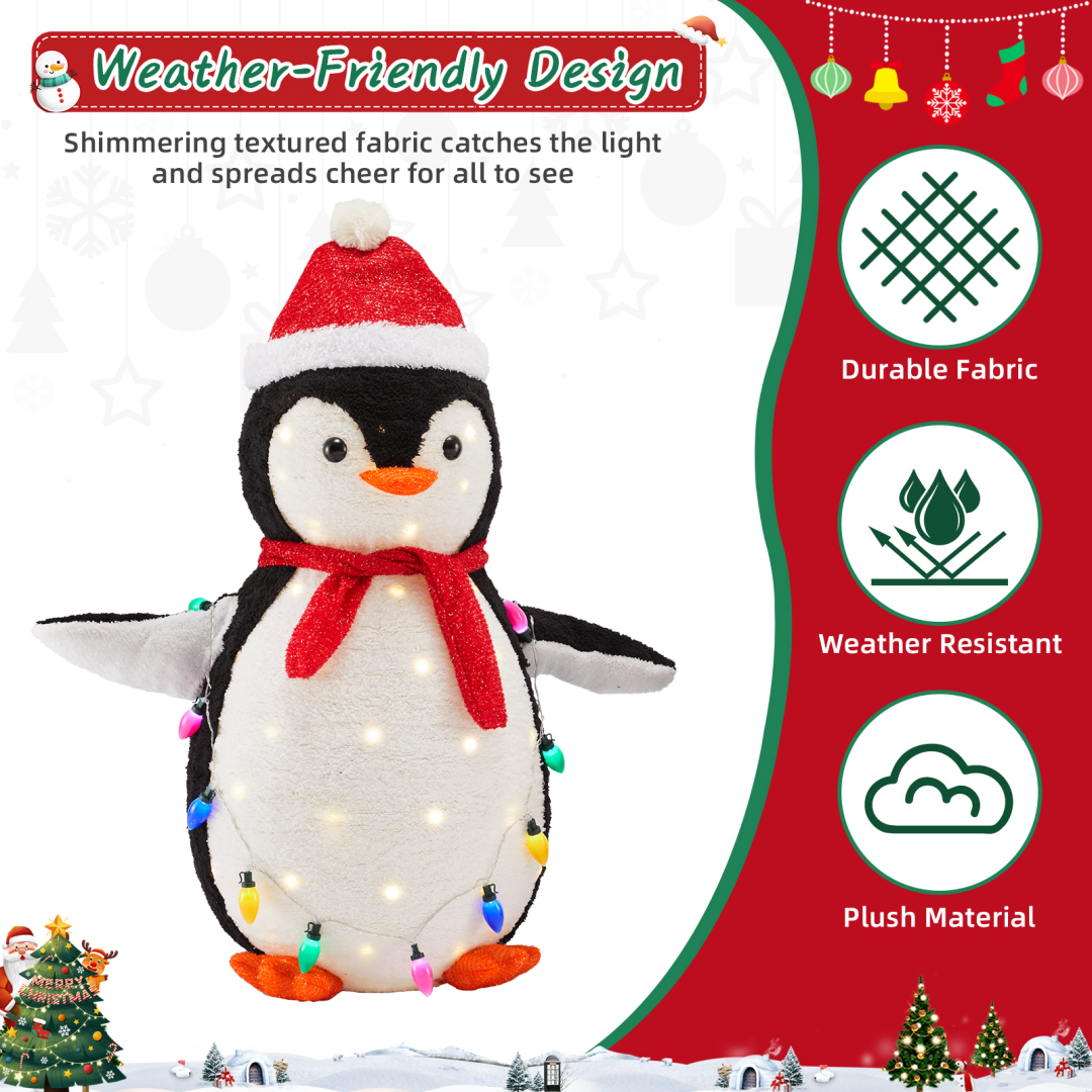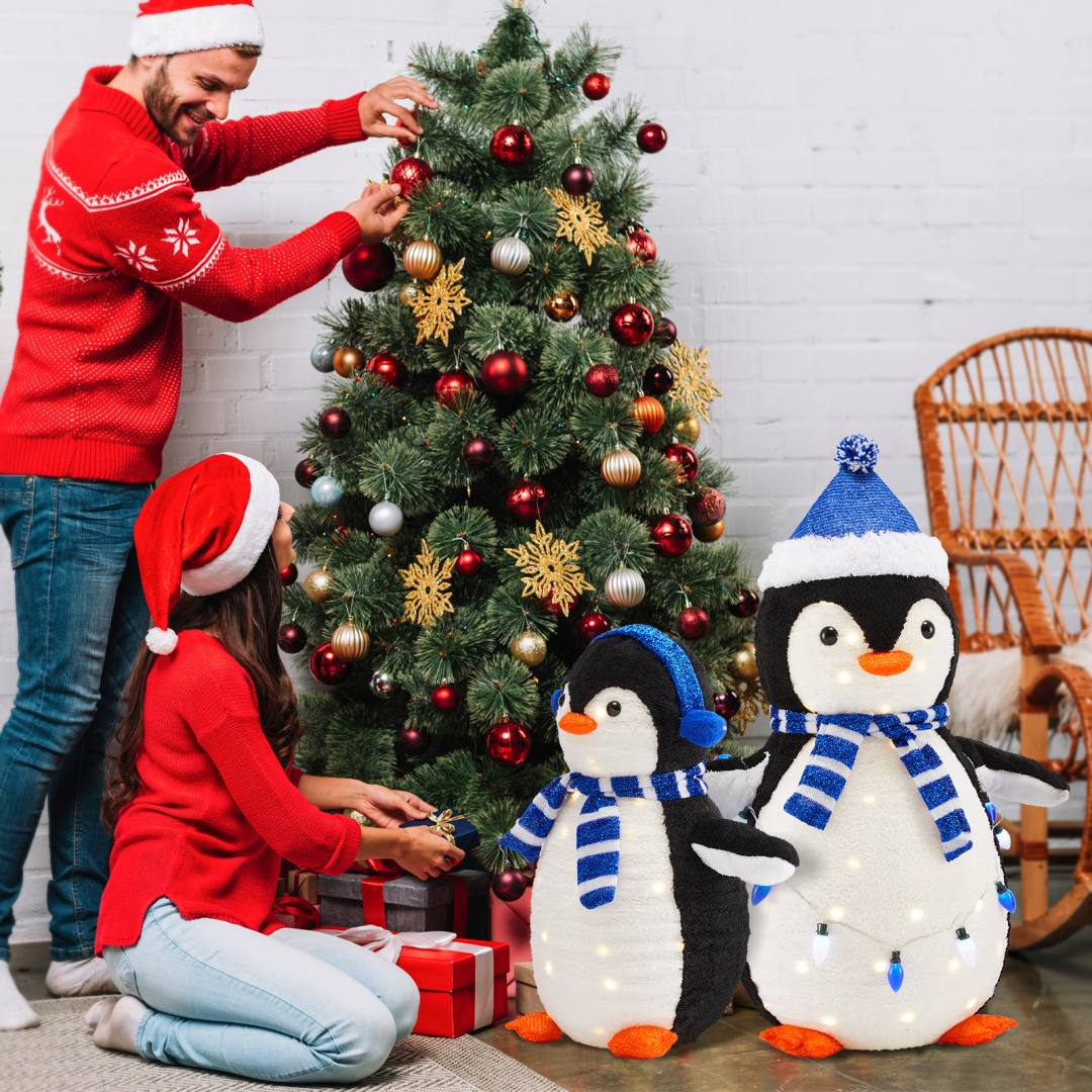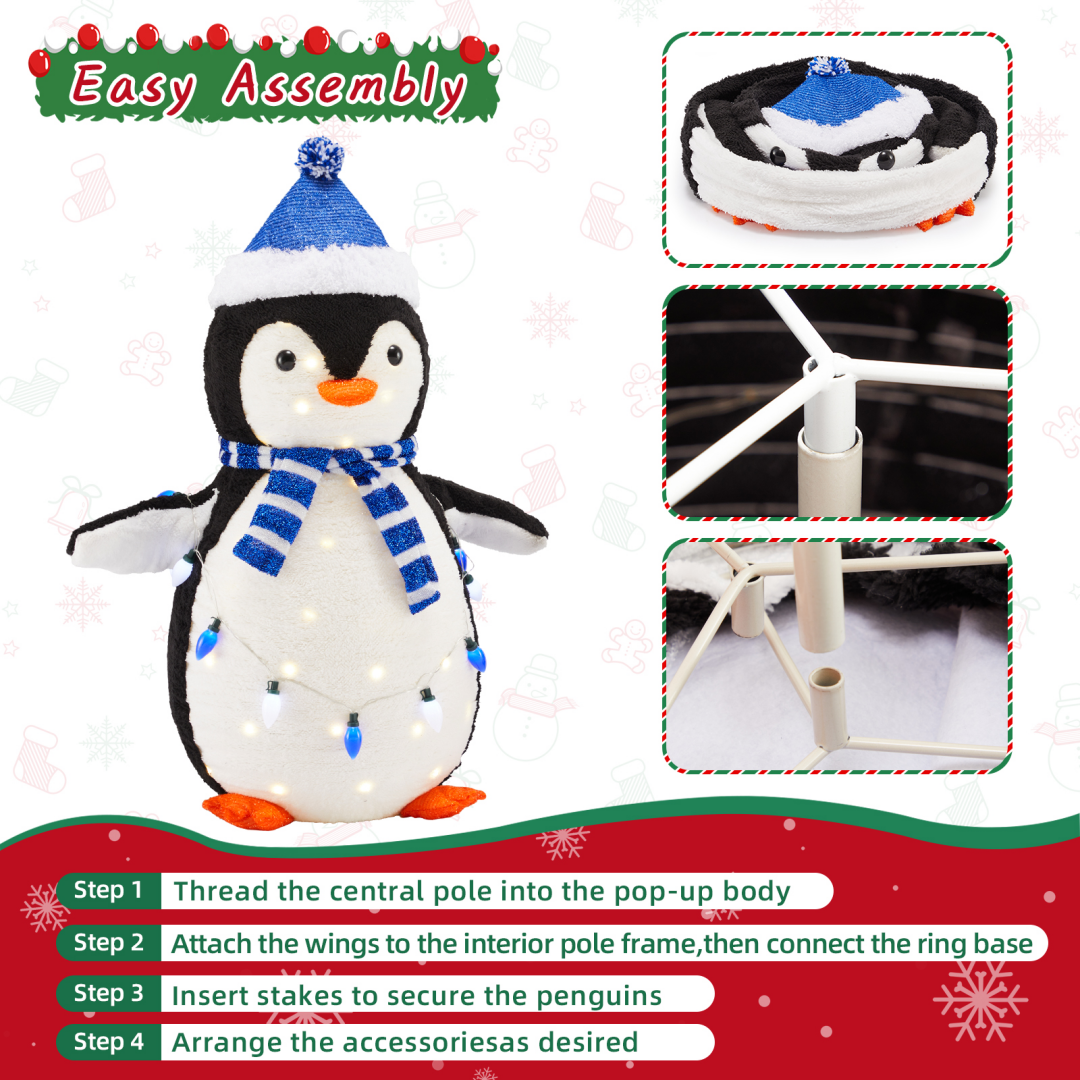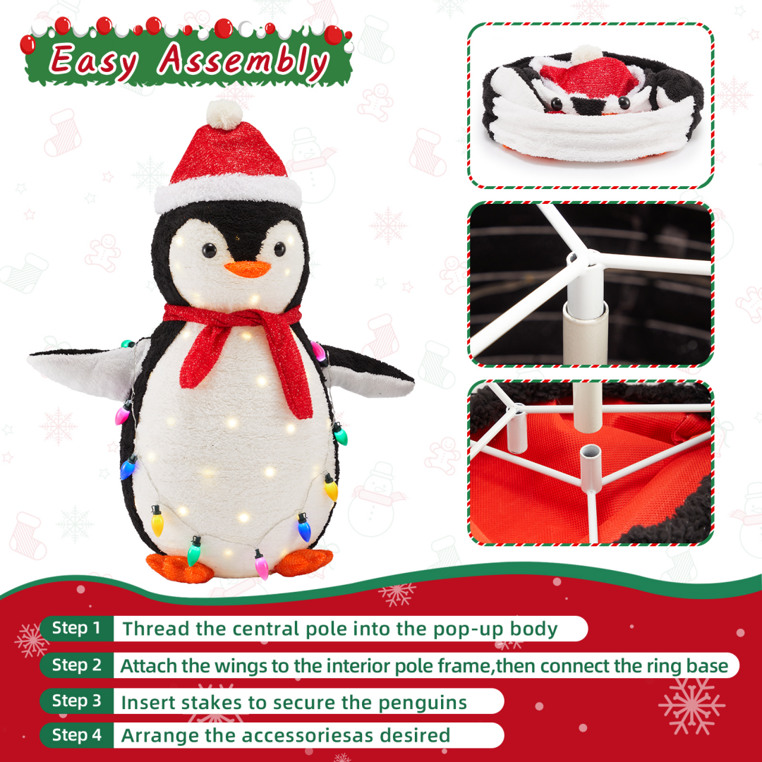 [150 Energy-saving multi-color LED lights] Pre-string 150 eco-friendly LED lights to emit vibrant and energy-saving light. Fairy-tale-like lights beautifully illuminate the penguins from within, and they charmingly hold a string of extra lights, adding a dazzling touch of color to your winter night.