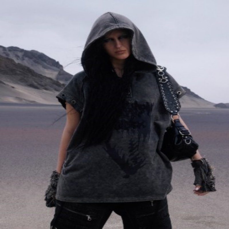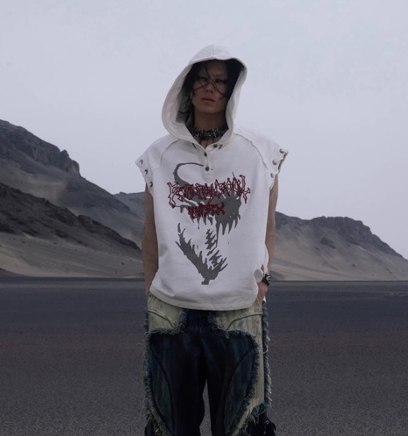 Pentagram Button Hooded Sleeveless Hoodie