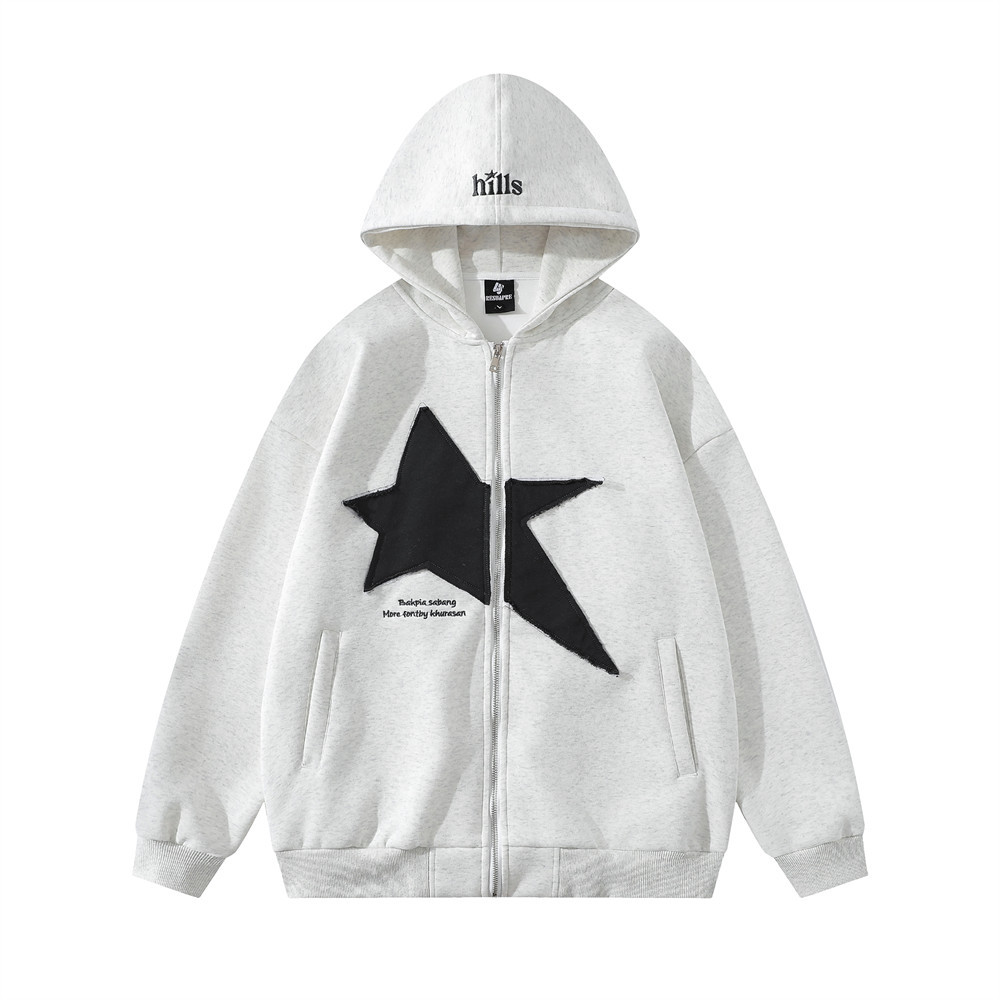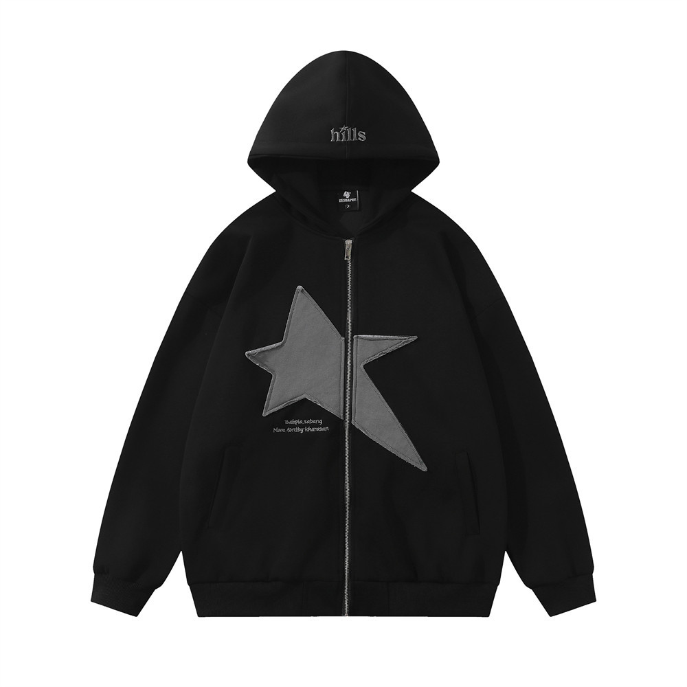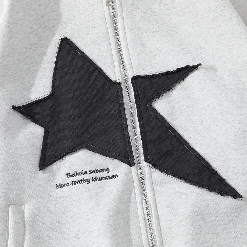 Pentagram Geometry Paste Cloth Embroidery Hooded Cardigan Sweater Men