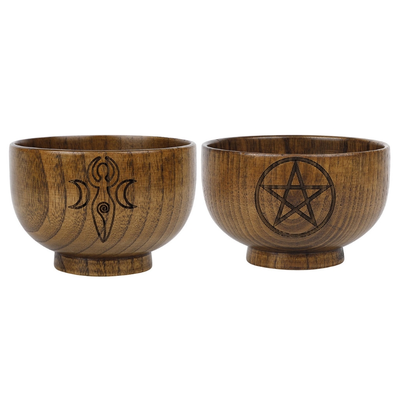 Pentagram Wooden Bowl With Three-phase Moon Goddess Storage Bowl Altar Decoration