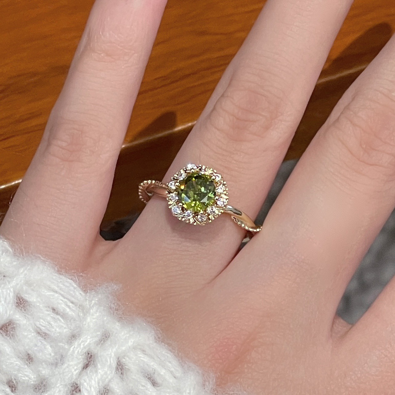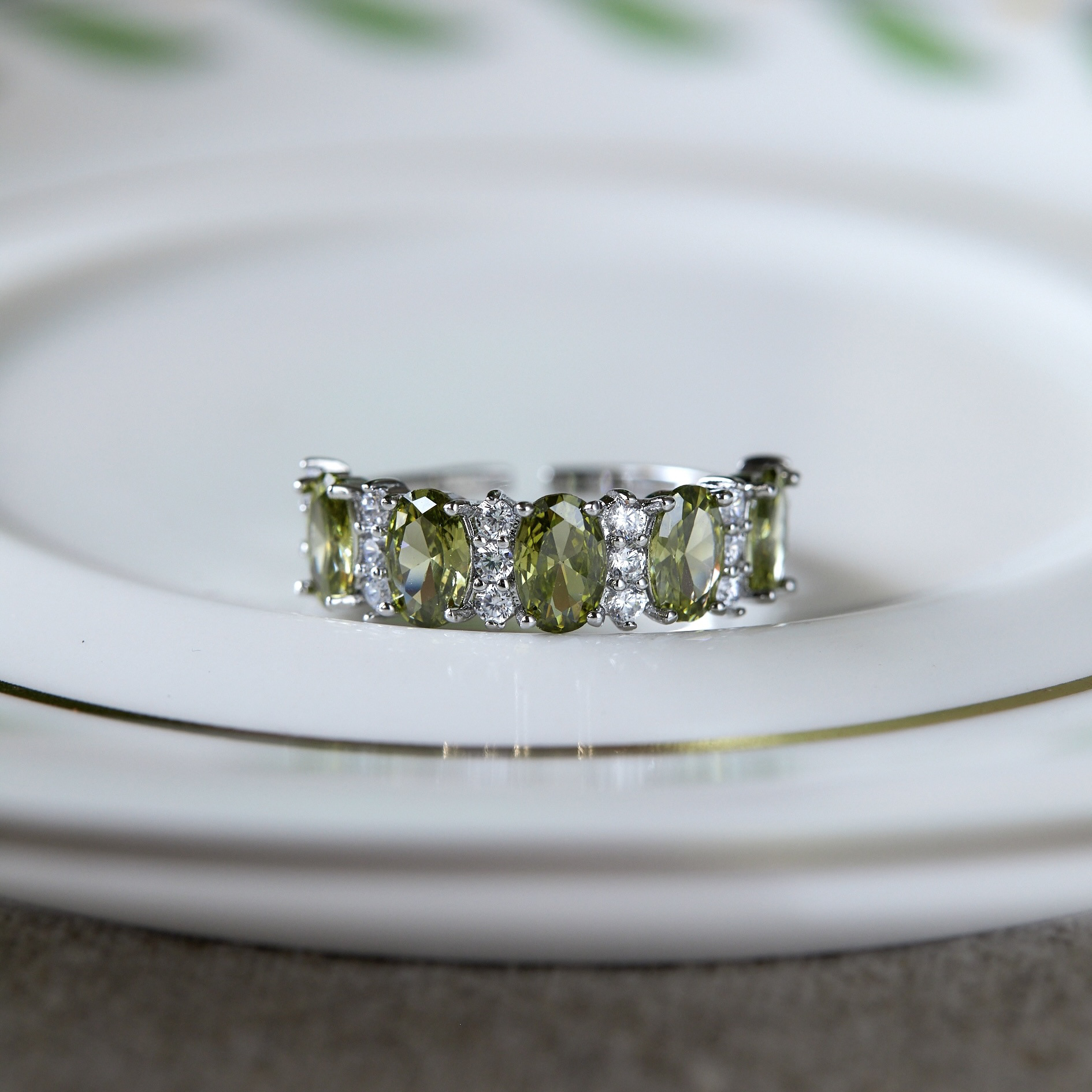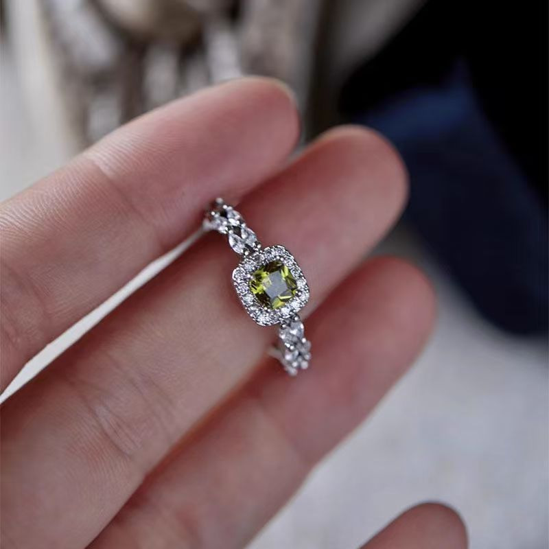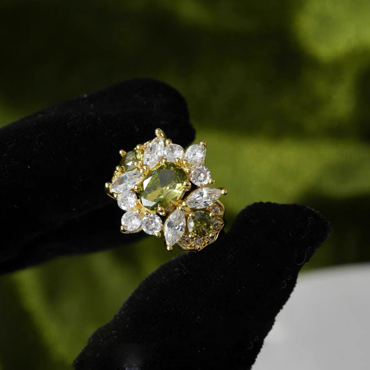 Peridot Retro Style Gorgeous Heavy Craft Light Luxury Zircon Full Diamond Ring, Stackable New Style, Shiny Marquise & Round Cut