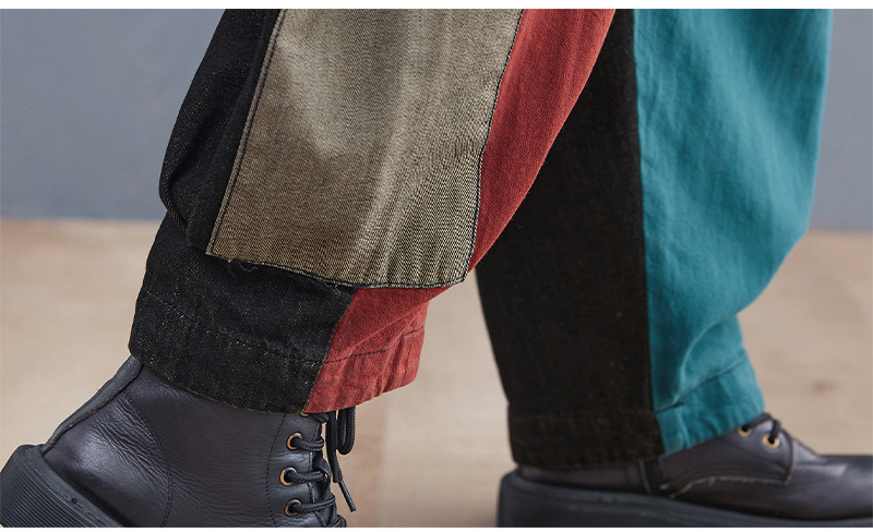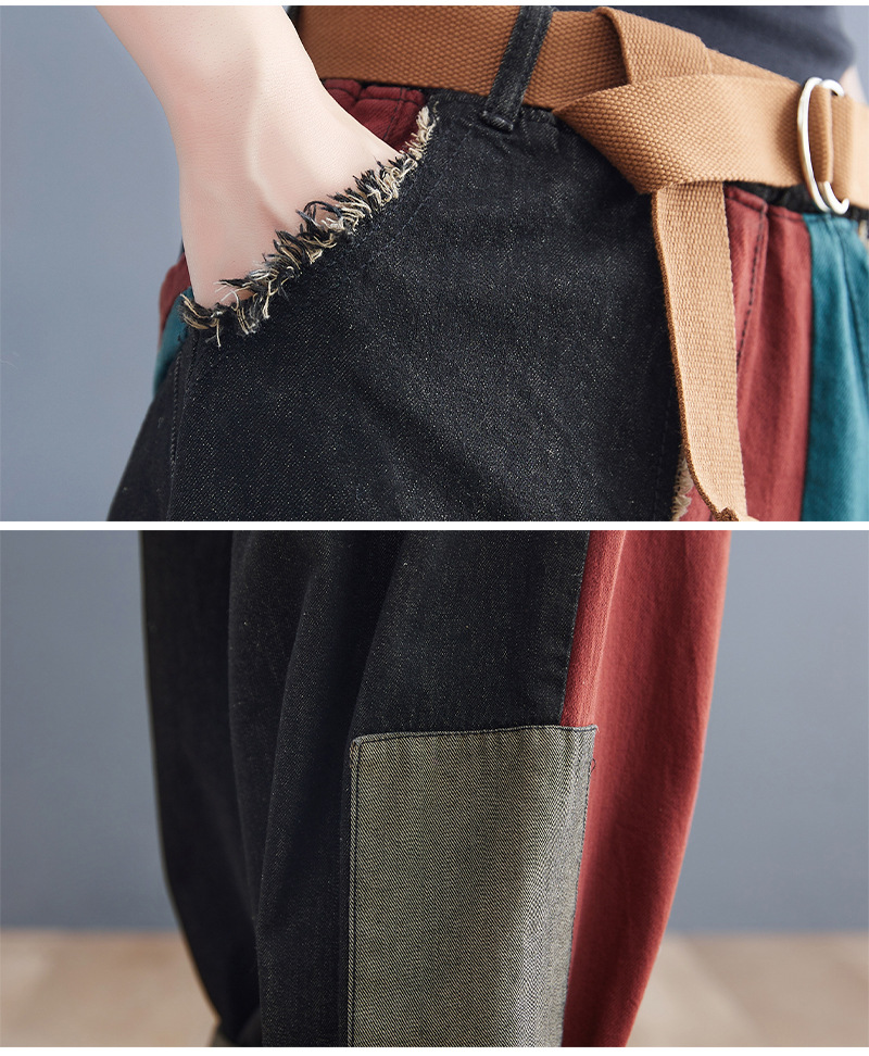 Personality Contrast Color Stitching Denim Trousers For Women
